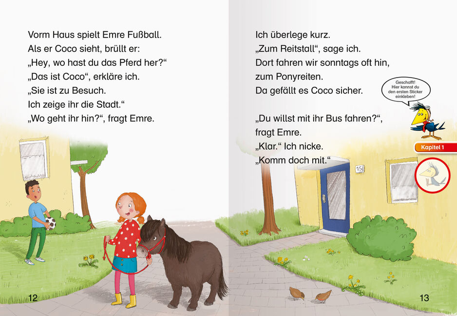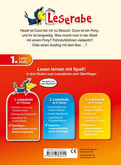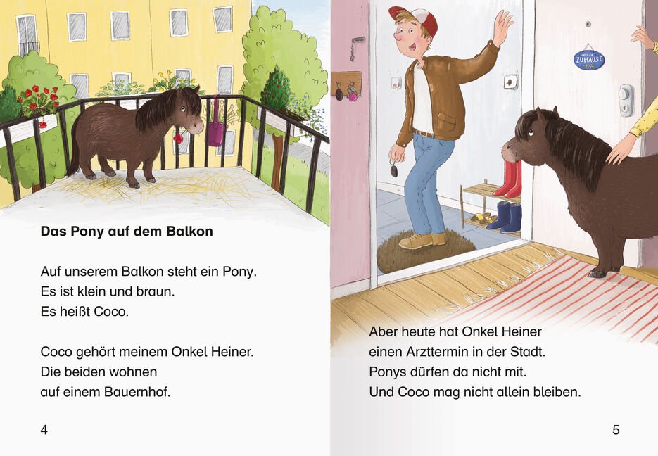 Pony Coco ist zu Besuch in der Stadt. Auf dem Balkon knabbert sie an Mamas Blumen. Der Busfahrer will kein Pony mitnehmen. Auf dem Spielplatz aber sind die Kinder begeistert von Coco. Jeder will sie streicheln. Und Coco? Die macht sich heimlich auf den Weg zum...