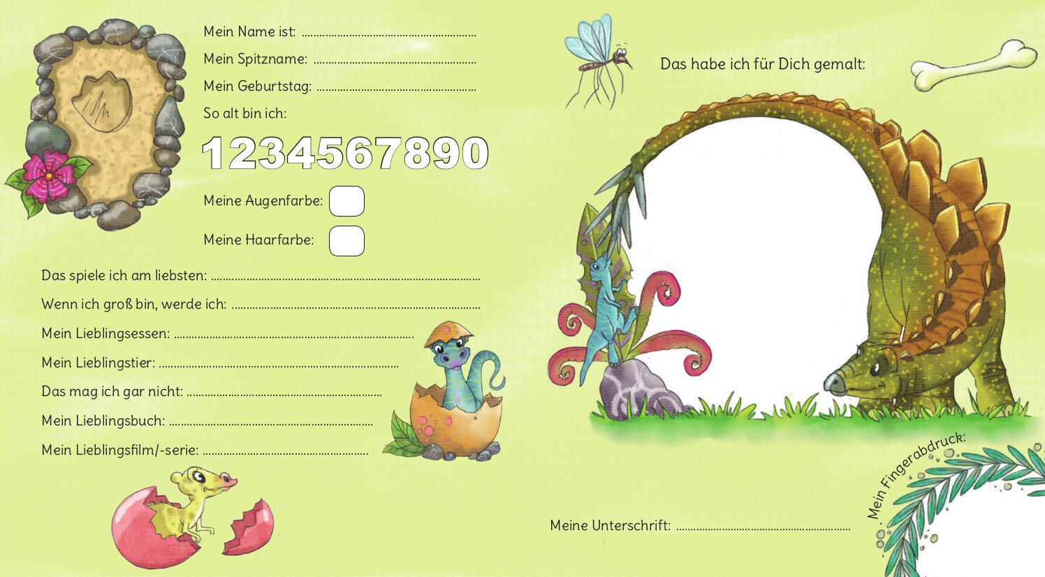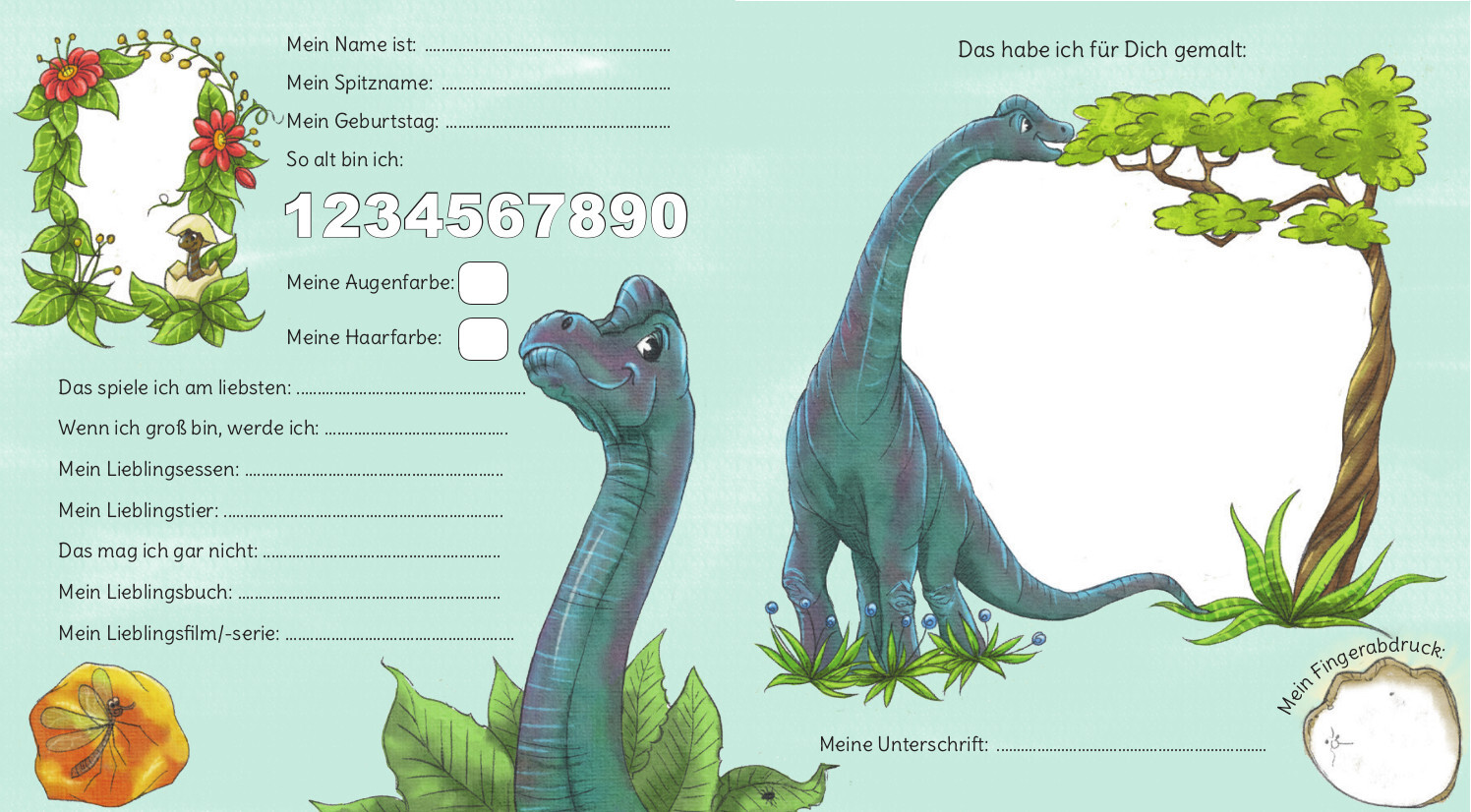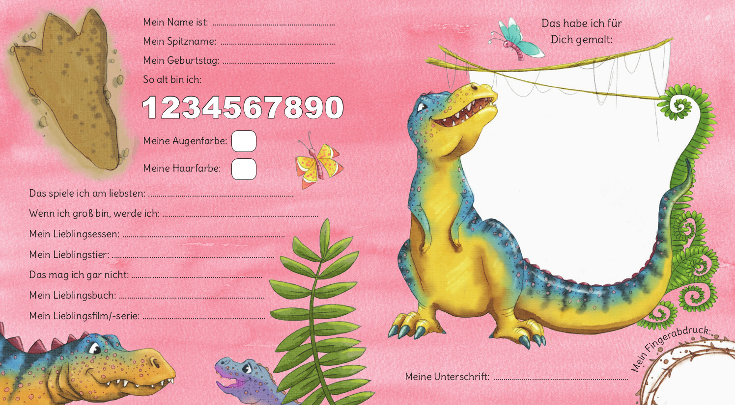 Ein Freundebuch für Kinder und ihre Freunde im Kindergarten: Die Dinos sind los! Kinder, die Dinosaurier lieben werden auf den Seiten zum Eintragen folgende Dinos finden: Brachiosaurus, Plesiosaurus, Triceratops, Pteranodon (Flugsaurier), Stegosaurus und Tyran...