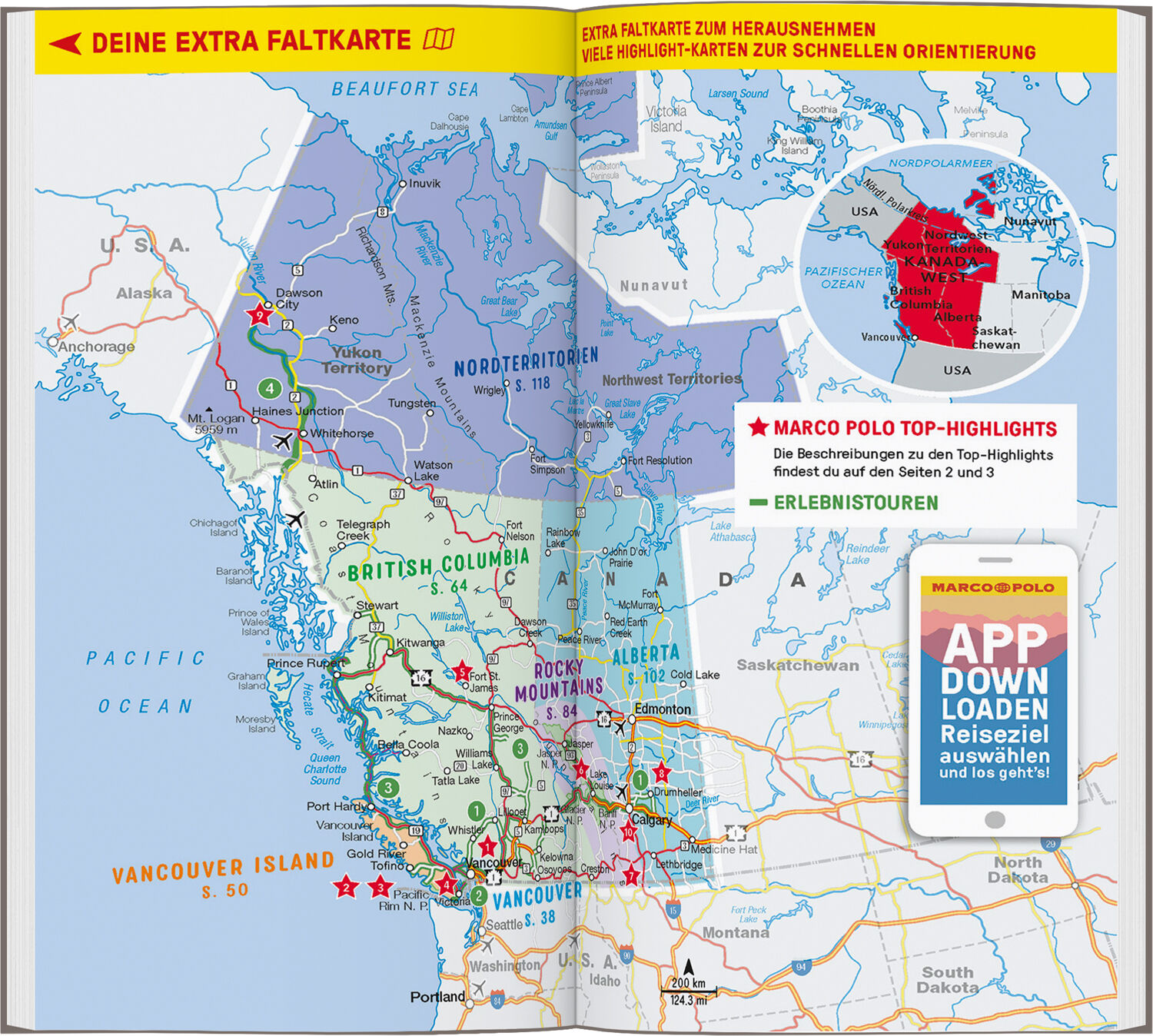 Gipfel, Gletscher und Grizzlys: Mit dem MARCO POLO Reiseführer Kanada West die Rocky Mountains & Vancouver erkunden Wale beobachten, den Pacific Rim Nationalpark durchwandern oder eine Nacht wie die Trapper zwischen Palisaden und Biberfellen im Fort St. J...