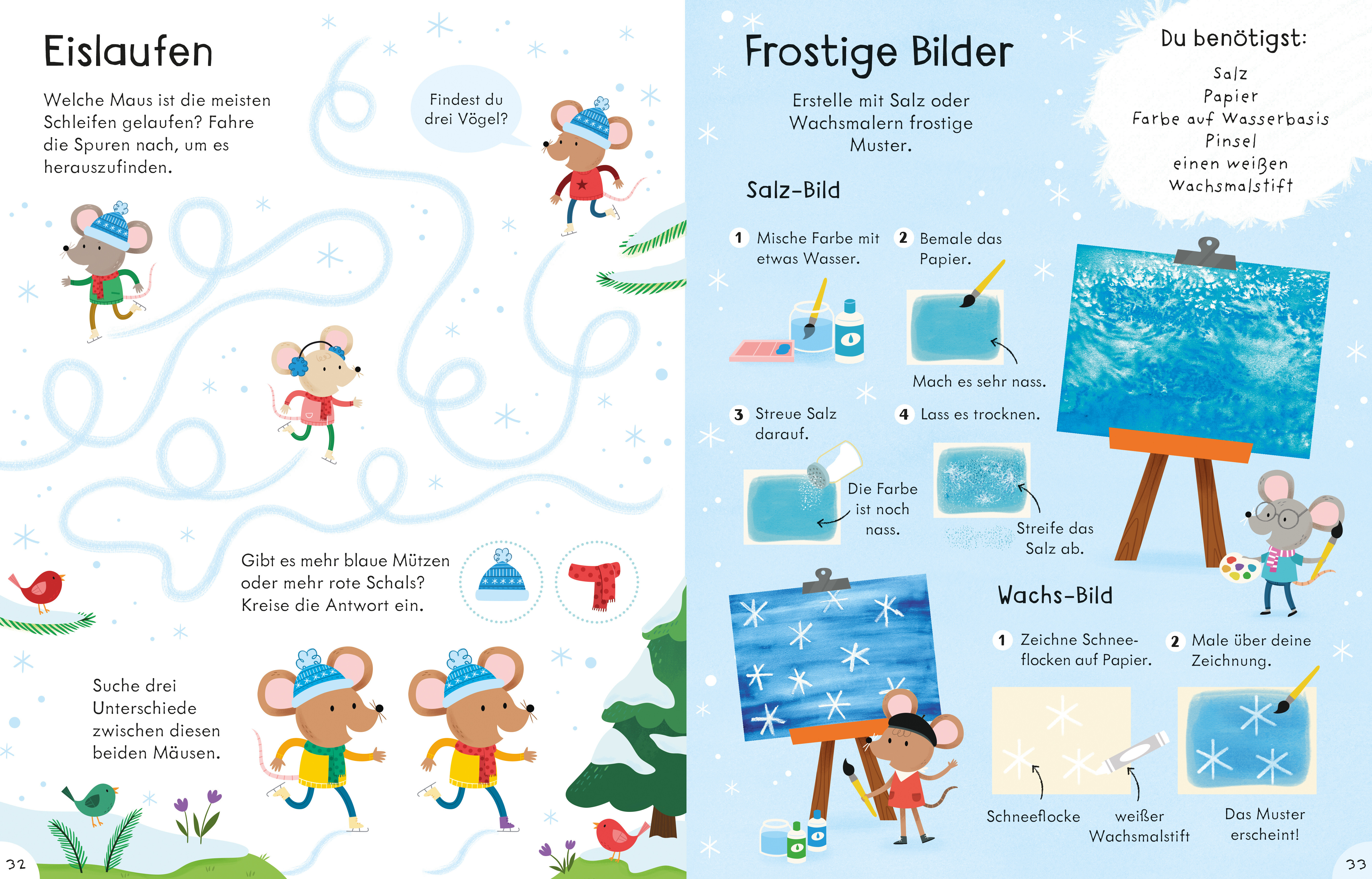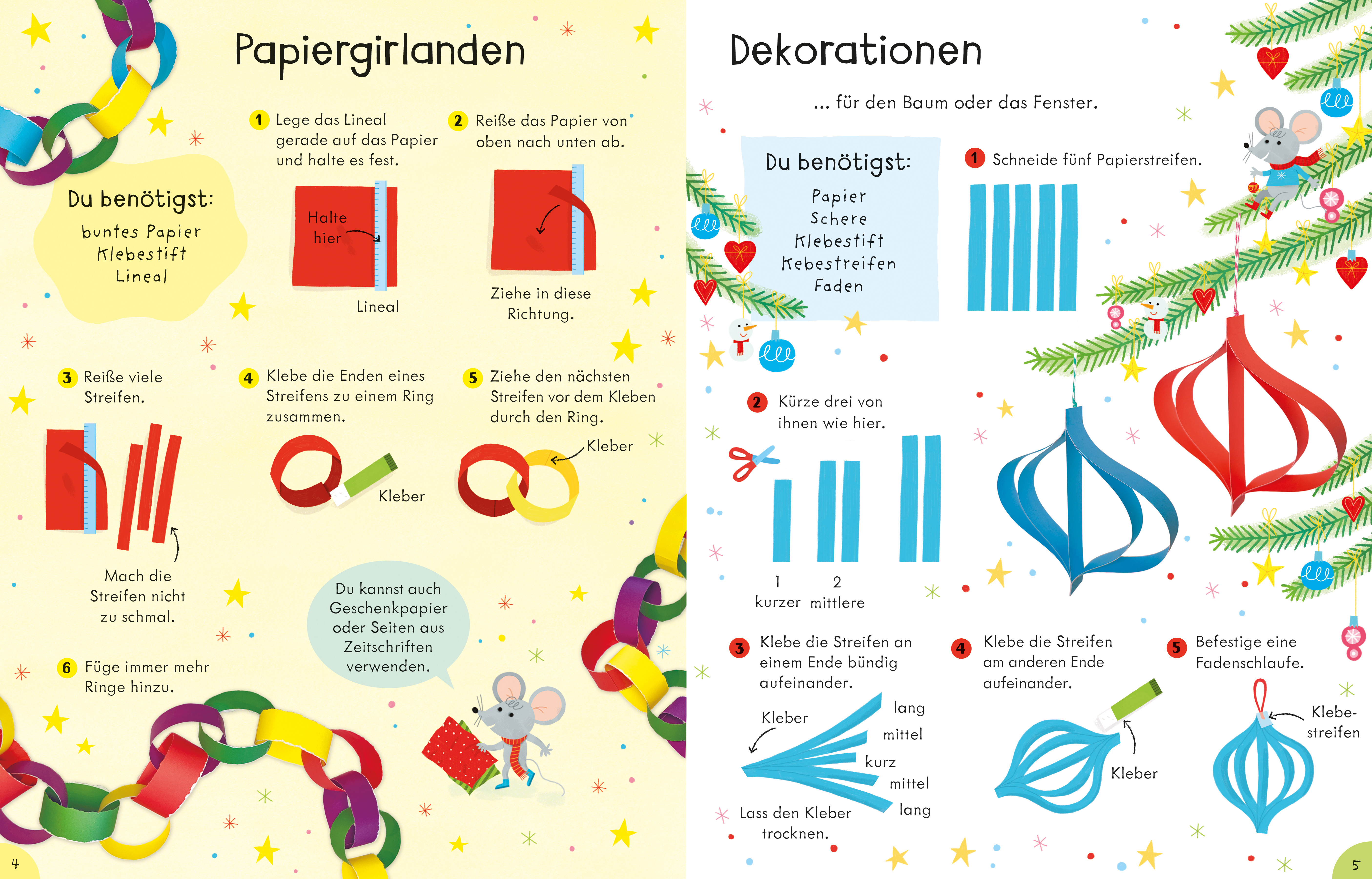 Male schöne Kugeln an den Weihnachtsbaum, bastle Schneemänner aus alten Socken oder lerne, wie man ein Rentier malt - hier kannst du nach Herzenslust basteln, rätseln und gestalten. Abwechslungsreicher Beschäftigungsspaß für die Adventszeit!