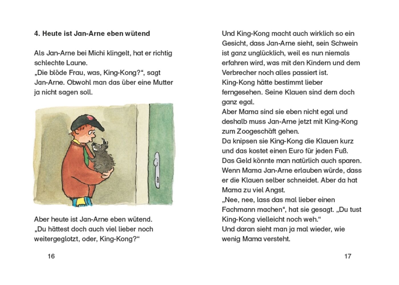Einsatz für King-Kong! Dass das Leben so aufregend sein kann, das hätten Jan-Arne und Michi ja nie gedacht. Eigentlich wollten sie ja nur mit King-Kong zum Zoogeschäft. Und jetzt stehen sie hier in der Dunkelheit und im Nebel und beschatten einen Einbrecher. ...