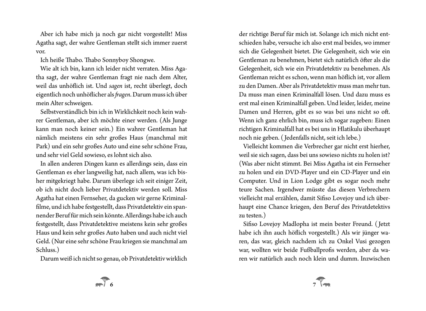 In "Thabo. Detektiv & Gentleman 1. Der Nashorn-Fall" von Kirsten Boie schlüpft der junge Thabo in die Rolle eines Detektivs in seinem Heimatdorf Hlatikulu in Eswatini. Inspiriert von seiner Liebe zu Kriminalfilmen und dem Wunsch, ein echter Gent...