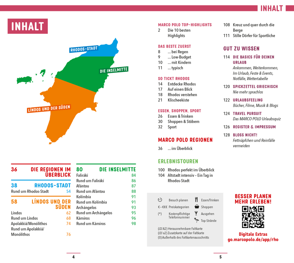 Urlaub auf der Sonneninsel mit dem MARCO POLO Reiseführer Rhodos Meerblau, Blütenpink, Waldgrün, Strandweiß: So farbenfroh leuchtet nur Griechenlands schönste Insel! Auf Rhodos erlebst du Natur im Überfluss, egal ob du auf Schusters Rappen durch das wilde Hin...