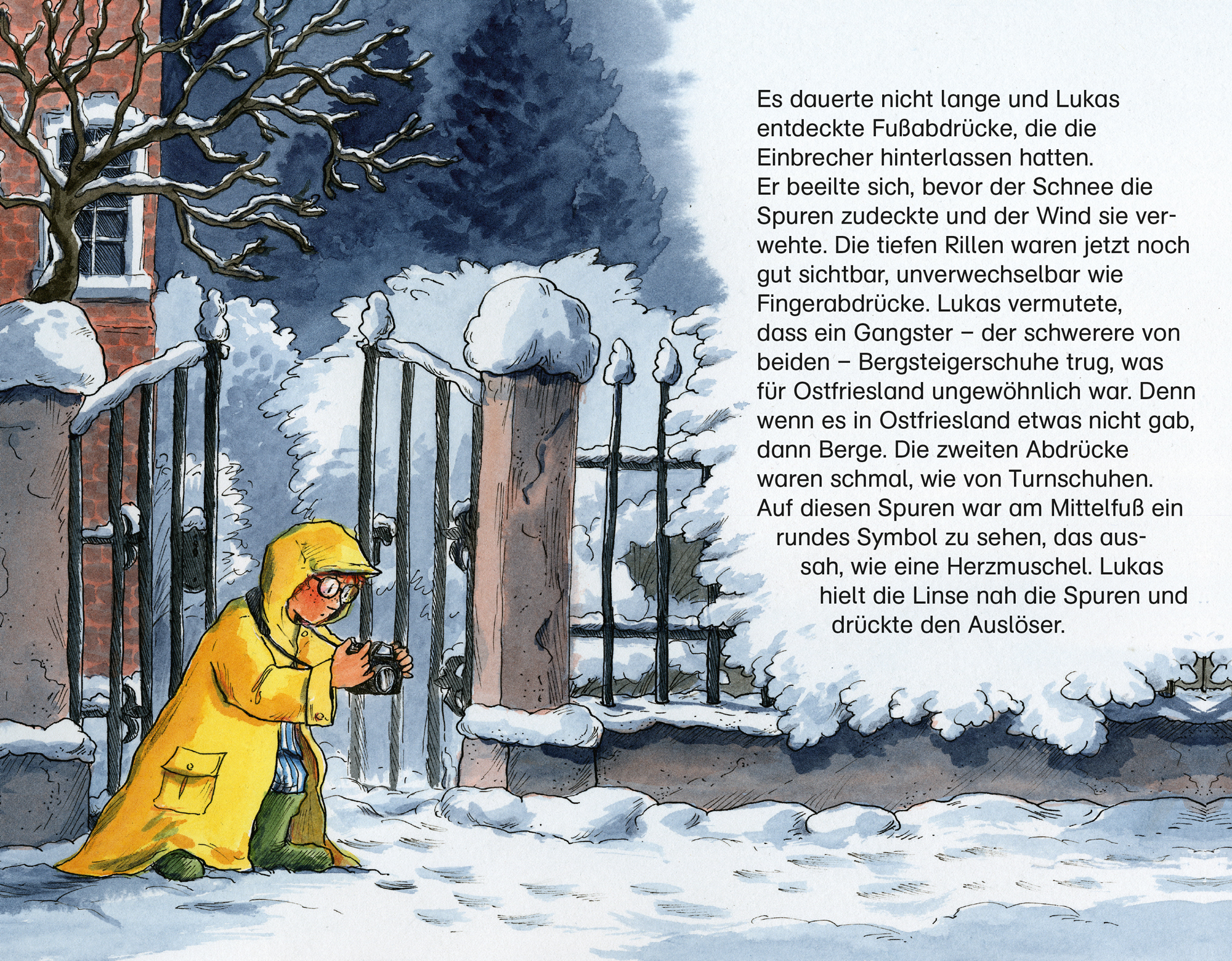 Einbrecher in der Villa Janssen! Und das ausgerechnet während Emma und Lukas allein zu Hause sind. Wegen eines starken Wintereinbruchs sitzen Papa Mick und Mama Sarah nämlich gerade auf der Nordseeinsel Juist fest. Zum Glück wissen die Nordseedetektive sich zu...