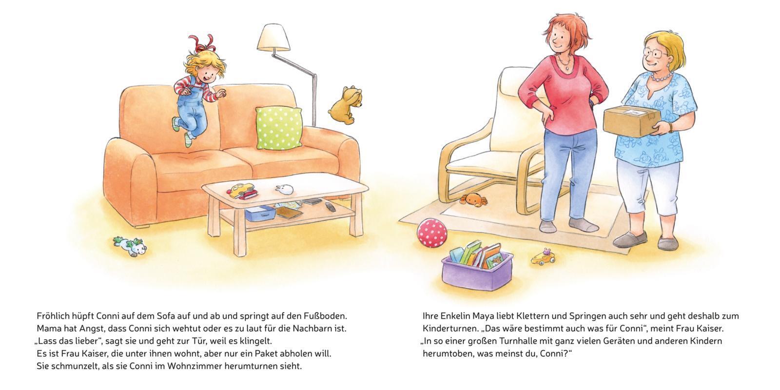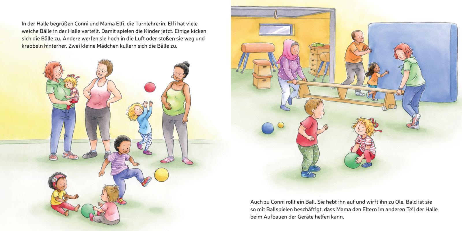 Auf die Plätze, fertig, los! Mit Conni zusammen den Spaß am Sport entdecken. Conni macht einen Luftsprung, denn Mama hat sie zum Kinderturnen angemeldet. Dort darf sie an der Sprossenwand hochklettern, über Bänke balancieren und sich sogar an einem Seil über ...