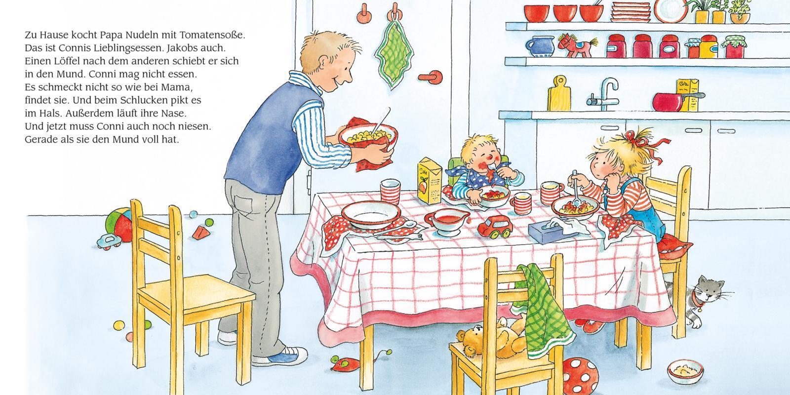 Gute Besserung, Conni! Conni fühlt sich nicht gut. Der Hals tut weh, ständig läuft die Nase und auch das Lieblingsessen schmeckt ihr nicht mehr. Ausgerechnet jetzt ist Mama nicht da! Zum Glück weiß Papa, was zu tun ist, wenn man krank wird. Und auch Oma hat t...