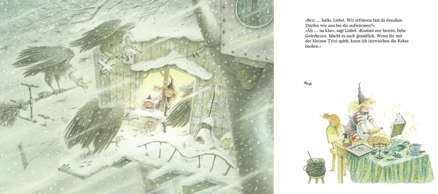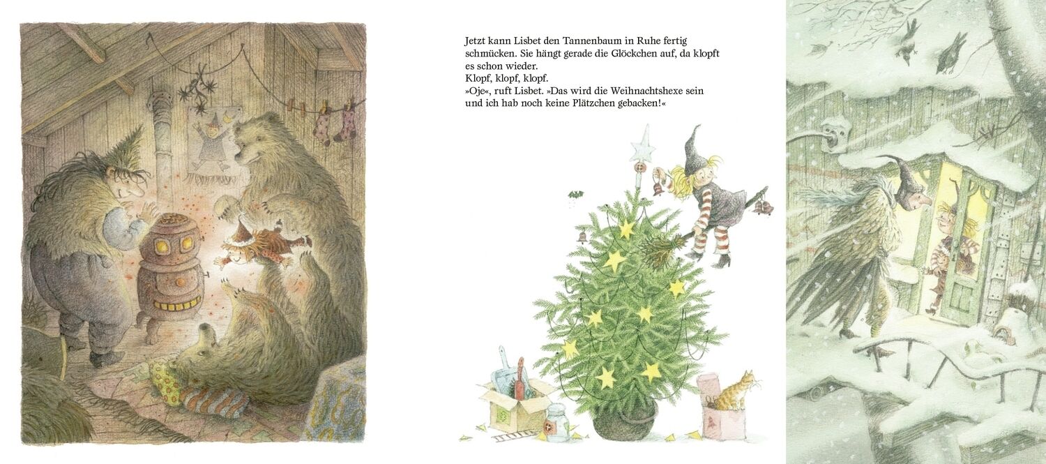Heute ist Heiligabend! Und es gibt noch sooo viel zu tun! Die kleine Hexe Lisbet muss noch den Tannenbaum schmücken und Plätzchen backen. Und ausgerechnet jetzt bittet die Weihnachtshexe sie, auf Hexenkind Trixi aufzupassen. Dabei ist Lisbet doch mit ihren Weihnachtsvorbereitungen vollauf beschäftigt, damit alles fertig ist, wenn die Weihnachtshexe am späten Abend wieder zurückkommt! Gut, dass sie wenigstens ihren Hexenbesen hat und manches im Flug erledigen kann.