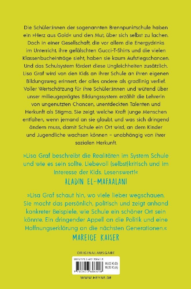 Die Schüler:innen der sogenannten Brennpunktschule haben ein »Herz aus Gold« und den Mut, über sich selbst zu lachen. Doch in einer Gesellschaft, die vor allem die Energydrinks im Unterricht, die gefakten Gucci-T-Shirts und die Klassenbucheinträge von »denen« ...