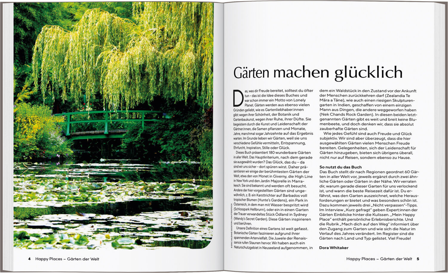 FINDE DEIN GLÜCK IN DEN GÄRTEN DER WELT, ausgewählt von Lonely Planet! Auf 272 Seiten vereint "Happy Places - Gärten der Welt" Erlebnisse für alle Sinne. Zu den Pflanzen aus fernen Ländern reist man im National Botanical Garden von Wales, Badevergnü...