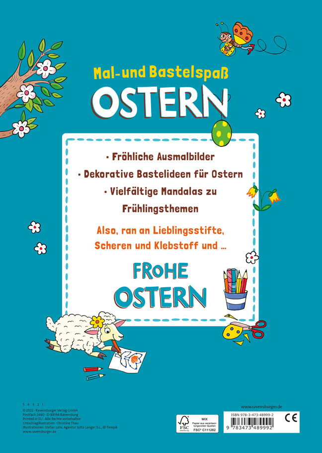 Malen und Basteln für Kinder ab 4 Jahren zur Osterzeit Dieses kunterbunte Malbuch enthält tolle Mandalamotive, Malvorlagen sowie Bastelseiten. Ob fröhliche Osterhasen, kuschelige Schäfchen oder wunderschöne Schmetterlinge - da kommt jeder Osterfan auf seine Ko...