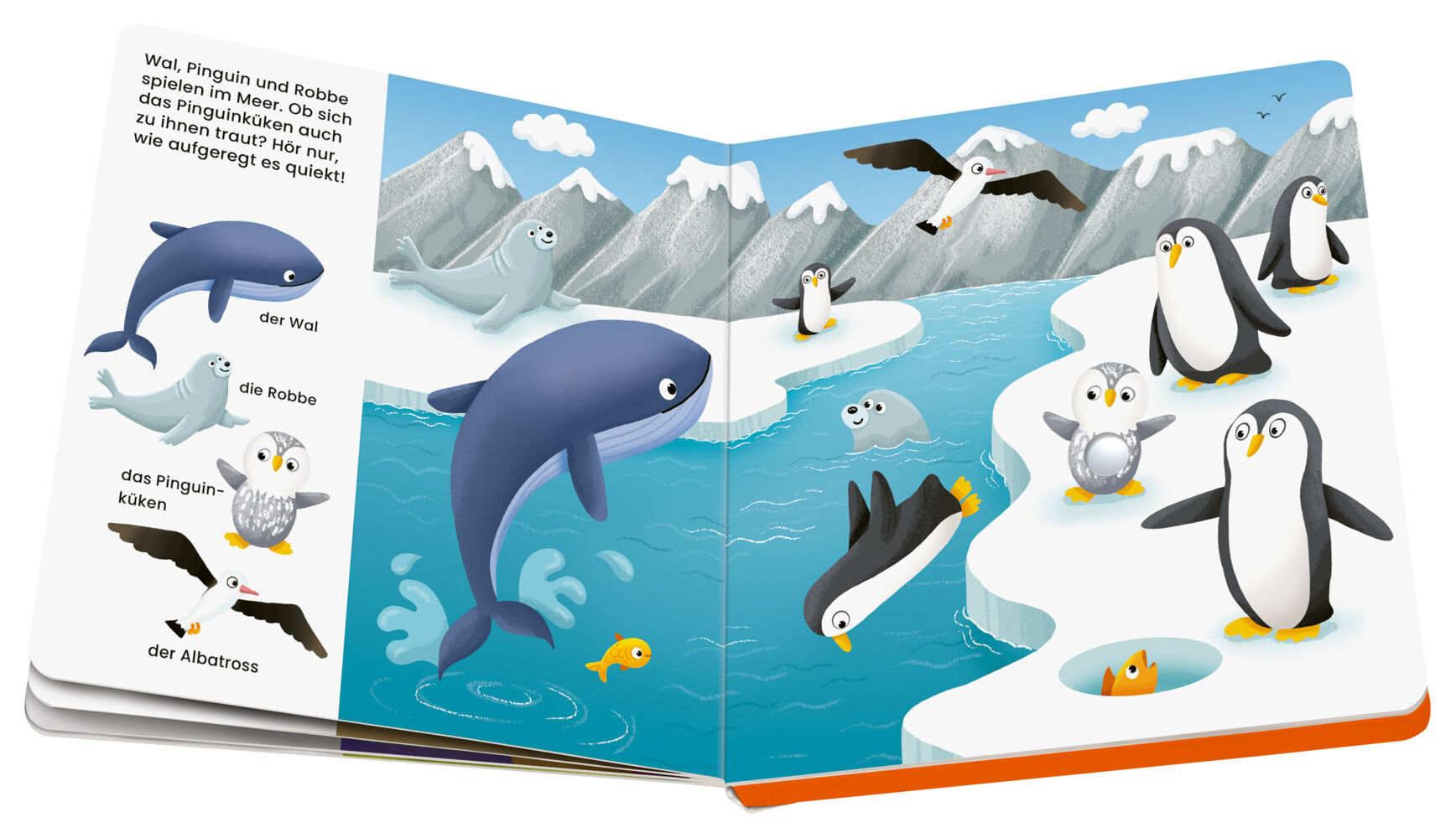 Tier-Such-Spaß mit süßen Geräuschen Wer trompetet denn da? Und wo ist das Leopardenkind? In jedem Lebensraum gibt es viele Tiere zu suchen und finden. 5 süße Geräusche machen die Entdeckungsreise durch den Ozean, den Dschungel und die heimische Weide für Kinde...
