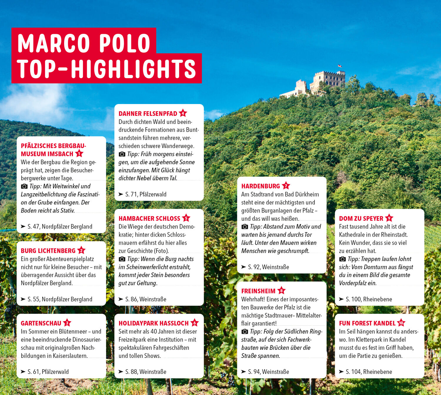 Burgen, Reben und Legenden:Entdecke mit dem MARCO POLO Reiseführer die Pfalz Von Mittelalter- bis Industrieromantik, von Weingenuss bis Waldabenteuer: Der Süden von Rheinland-Pfalz hält viele Highlights bereit! Über die Jahre haben römische, französische und ...