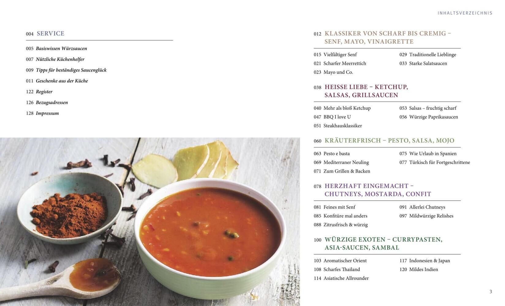 Die ganze Welt der Dips und Saucen: Mit den passenden Rezepten dazu wird's bei uns jetzt richtig bunt auf dem Teller! Das neue Kochbuch Pesto, Salsa & Co. selbst gemacht aus der Einfach-Clever-Reihe von GU hat über 90 klassische und neue Rezepte für uns parat. Damit können wir unsere Lieblings-Würzsaucen und Pasten, Salsas und Dips im Handumdrehen selber rühren. Von mild bis scharf, von klassisch bis trendig ist alles dabei, was wir für unser Saucenglück brauchen: kräuterwürziges Pesto, Dips zum Grillen, Rezepte für selbstgemachtes Ketchup, selbstgemachten Senf und frische, cremige Mayo. Und natürlich geht es auch heiß zur Sache mit internationalen Rezepten für scharfe Saucen, zum Beispiel für Sambal oder Currypaste. Und so ist der Rezeptteil aufgebaut:
