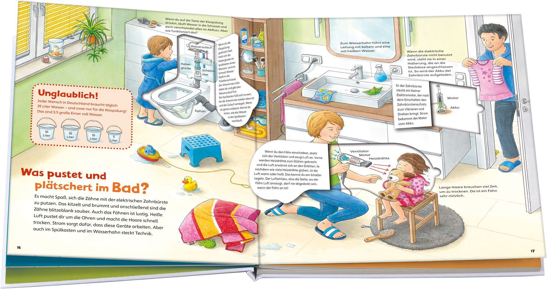 Ein Haus steckt vom Dachboden bis zum Keller voller Technik. Heizung, Fernseher, Computer oder Küchenmaschine - jedes Gerät arbeitet anders. Und wie sieht die Technik von innen aus? Was pustet und plätschert im Bad? Wie fährt ein Spielzeugauto? Anhand farbenfr...