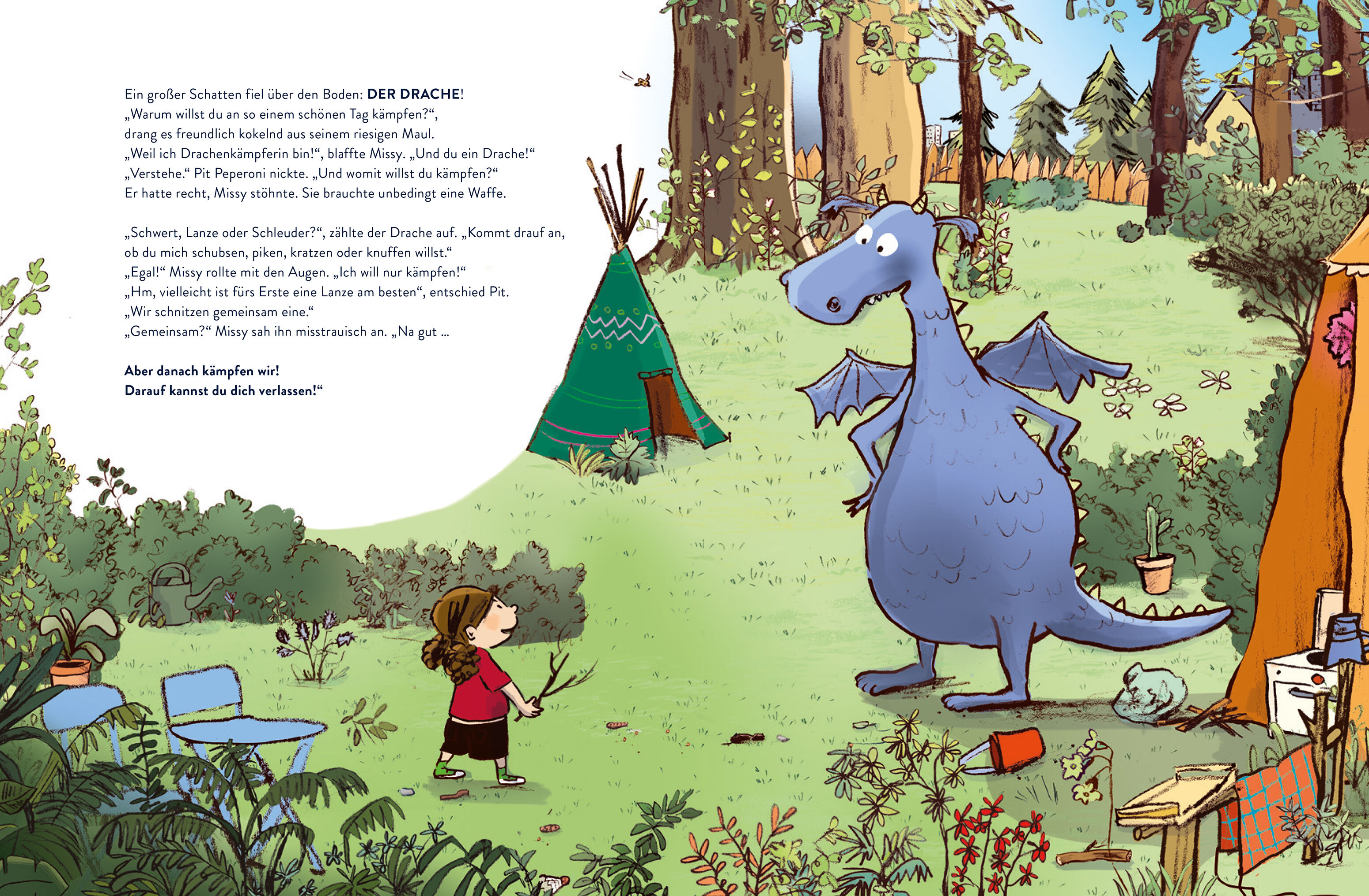 Missy ist eine echte Drachenkämpferin und herrlich gut im Brüllen, Schubsen, Piken und Knuffen! Jammerschade, dass ihr bisher noch nie ein richtiger Drache begegnet ist. Doch was ist das? Da wohnt ein echter Drache in ihrem Garten? Missy fordert ihn natürlich...