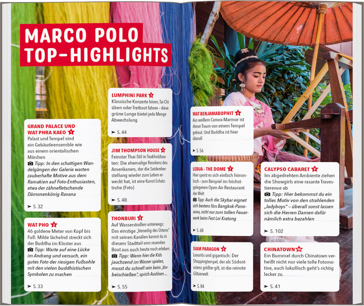 Urlaub zwischen Tradition und Moderne: Mit dem MARCO POLO Reiseführer Bangkok entdecken Eine Megacity zwischen Himmel und Erde, Gestern und Heute: Während oben der Skytrain Touristen und Einheimische in Rekordzeit transportiert, paddeln unten Gemüseverkäuferi...