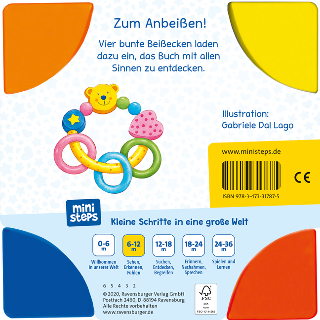 Dieses Buch haben Babys zum Fressen gern! Vier farbenfrohe Beißecken wecken die Entdeckerlust von Kindern ab 6 Monaten. In diesem Alter wird gern alles in den Mund genommen. Deshalb sind die genoppten Kunststoffecken beim Knabbern, Kauen und Beißen besonders s...