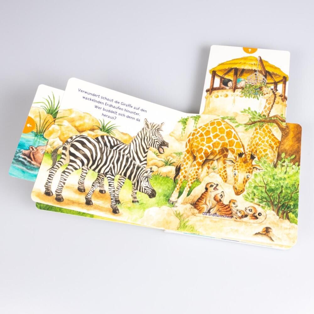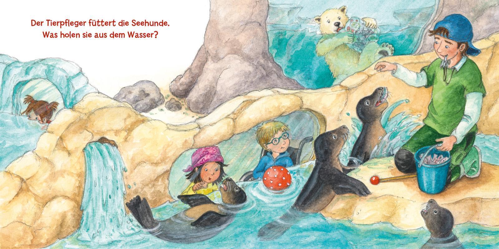 Ein Sound-Spielbuch mit fünf stabilen Geräusche-Schiebern für Kinder ab 12 Monaten. Ein Besuch im Zoo ist immer toll! Wer streitet sich denn da im Affengehege? Wen füttert der Pfleger mit Fischen? Welches Tier brüllt so laut? Und wer mag gar nicht nassgesprit...