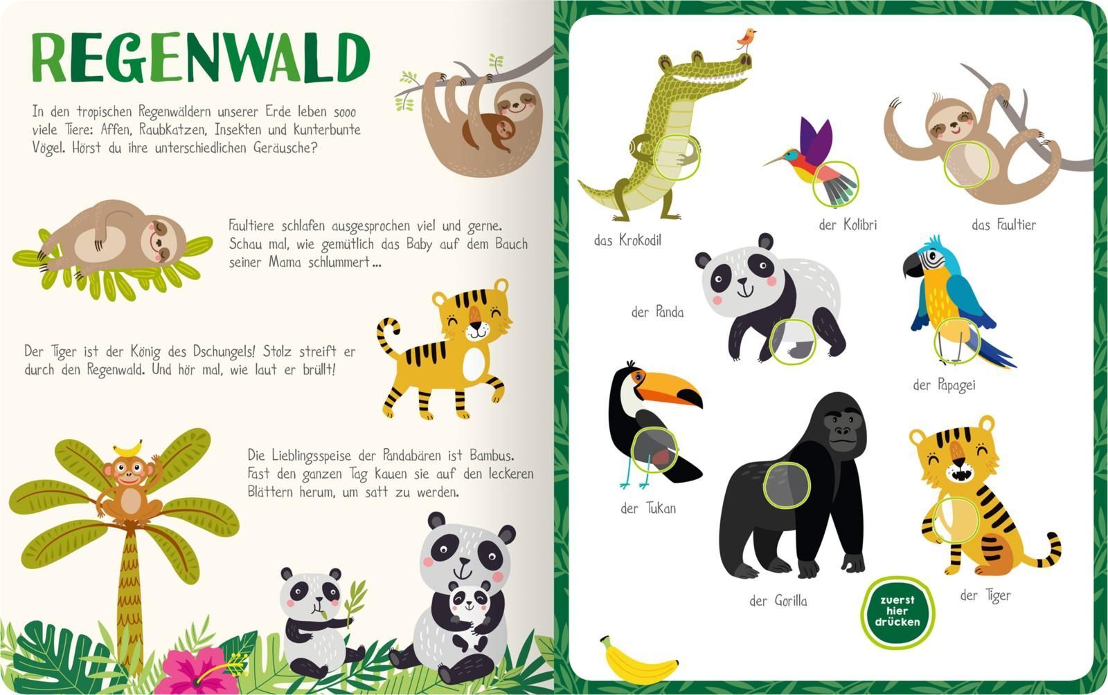 Tönendes Buch »Ein tolles Soundbuch zum vorlesen, entdecken und erleben und auch zum mitmachen.« Klappentext Hör mal, wie die Tiere klingen! Wie macht die Kuh? Und wie klingt der Elefant? Auf jeder Doppelseite wird ein Lebensraum mit seinen Tieren vorgestellt:...