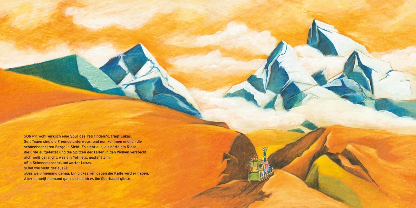 Spannendes Bilderbuch nach Motiven von Michael Ende für Kinder ab 4 Jahren. Jim Knopf und Lukas ist kein Fluss zu lang, kein Berg zu hoch und kein Weg zu weit. Auf der Suche nach neuen Abenteuern reisen die beiden in den Himalaya, um sich den höchsten Berg de...