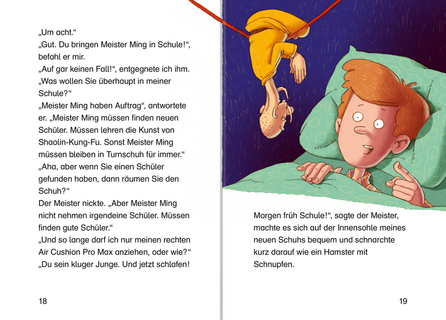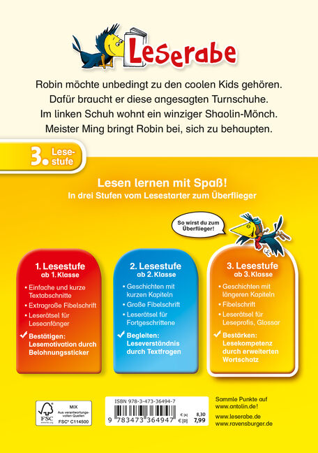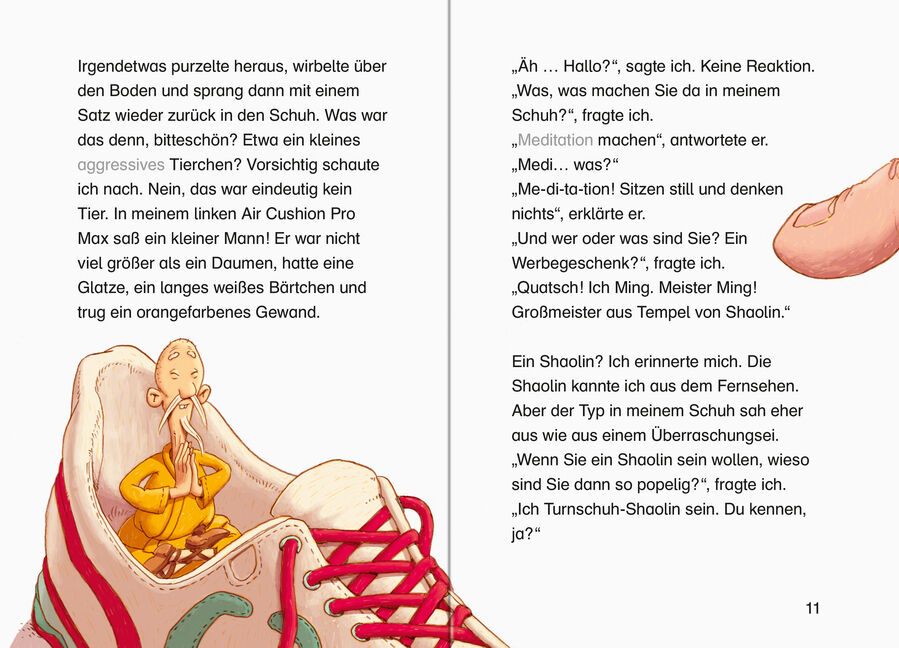 Robin würde so gern zu den coolen Kids gehören! Nicht mal mit seinen neuen Turnschuhen kann er die anderen beeindrucken: Wie immer machen sie sich über ihn lustig. Doch aus dem linken Schuh bekommt er plötzlich Hilfe: Der daumengroße Shaolin Meister Ming sucht...