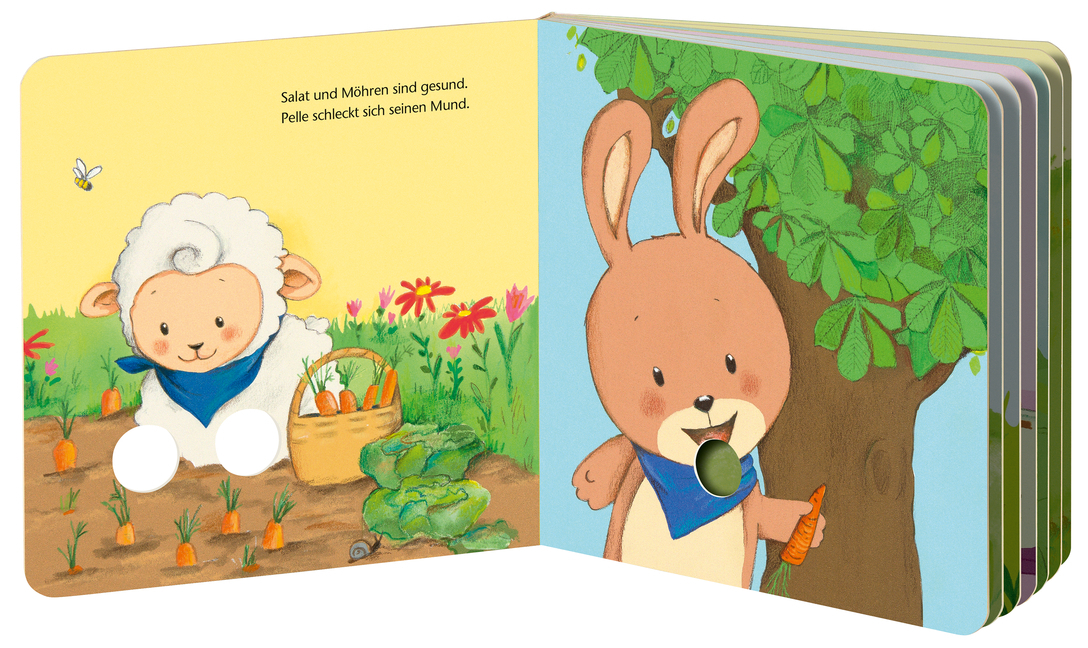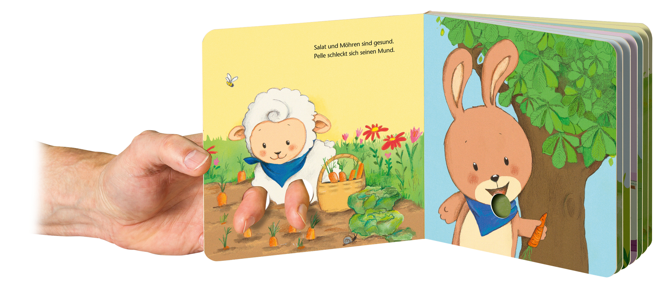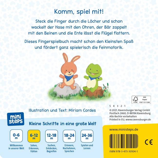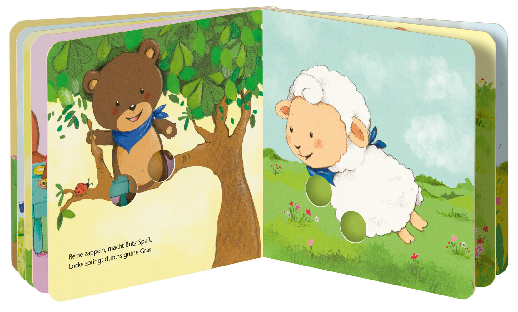 Alle spielen mit! Einfach die Finger durch die Löcher stecken und schon werden die Figuren lebendig: Pelle, der Hase wackelt mit den Ohren, Butz, der Bär zappelt mit den Beinen und Ente Emil hat lustige Watschelfüße. Ein Fingerspielbuch das schon Kleinkindern ...