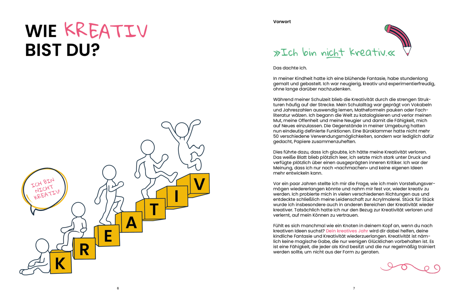 Kreativität hat man oder eben nicht? Von wegen Kreativität ist eine Fähigkeit, die wie ein Muskel trainiert werden kann. Mithilfe der täglichen, abwechslungsreichen Übungen von Miriam Schelle werden unsere kreativen Fähigkeiten entdeckt und über ein ganzes Jah...