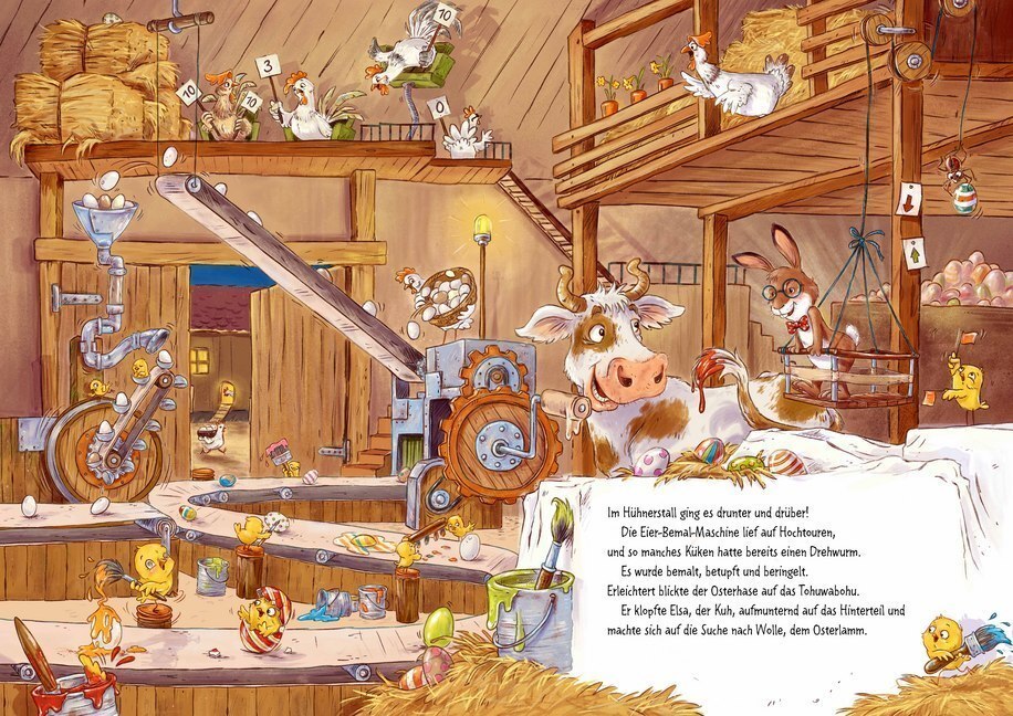 Der Osterhase hat's mal wieder vermasselt. Einen Tag vor Ostern fällt ihm auf, dass die Planung gehörig aus dem Ruder gelaufen ist. Es herrscht Chaos. Nur gut, dass er Freunde hat: Eitle Gockel, ein Haufen aufgeregter Hühner und ein in die Jahre gekommene...