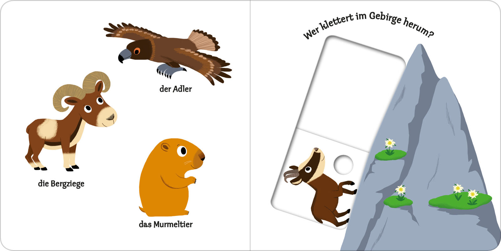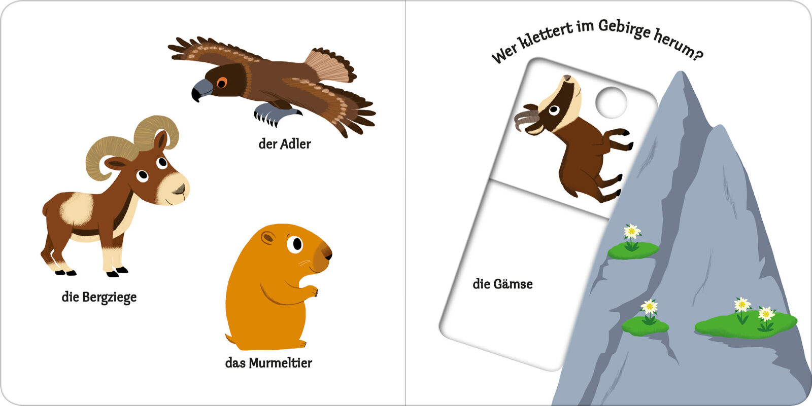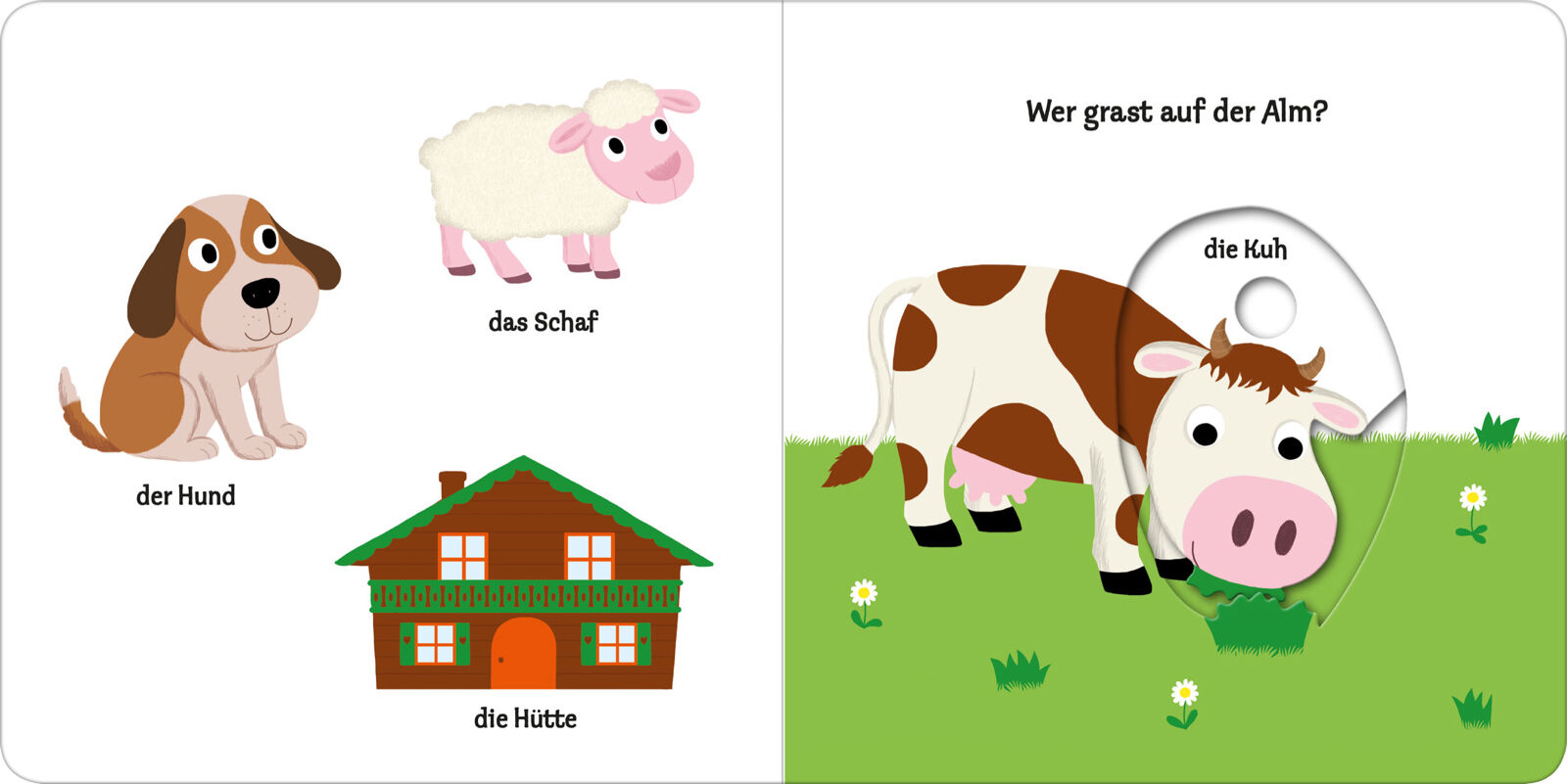 Keine Altersbeschränkung Das Naturbuch für die Kleinsten Wer grast da auf der Alm? - Na, die Kuh! Auf Bilder zeigen, zuhören und die Welt verstehen, so lernen schon die Kleinsten spielerisch und mit viel Spaß alles rund um das Wandern und die Berge. Das schön ...