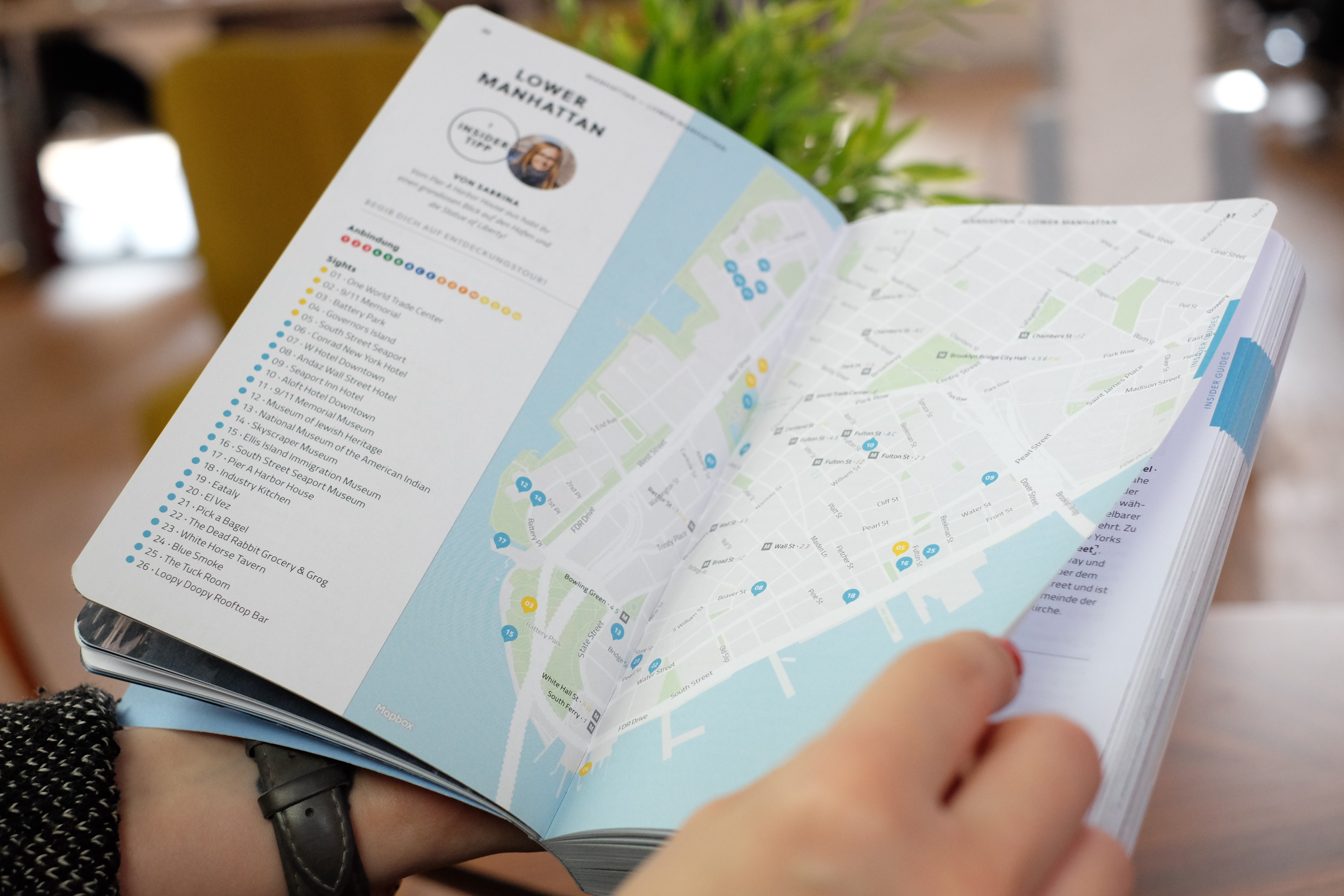 Uns lag besonders am Herzen, dass ihr ein komplettes "Wohlfühlpaket" mit unserem New York Reiseführer habt. Deshalb gibt es zu jeder wichtigen Attraktion oder Tour auch passende Gastronomie-Spots, damit ihr das Maximum aus eurer New York Reise herausholt. Wir finden es zum Beispiel ganz toll, nach dem Besuch des One World Trade Centers mit der Aussichtsplattform One World Observatory die Eindrücke noch einmal auf uns wirken zu lassen. Am besten in dem italienischen Foodmarket "Eataly Downtown", von wo aus ihr direkt auf die Wasserfälle des 9/11 Memorials schauen könnt. Und damit nicht genug: Der Reiseführer wird mit unserer Website und einer kostenlosen App verknüpft. Somit habt ihr alle Infos auch digital. Viel Spaß in New York!