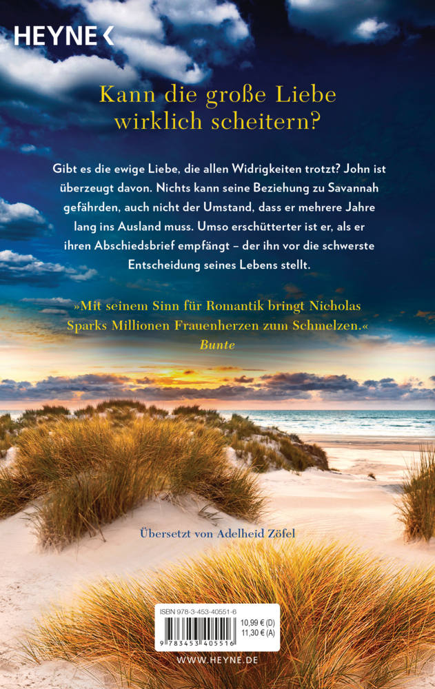 Keiner schreibt über die Liebe wie Nicholas Sparks Gibt es die ewige Liebe, die allen Widrigkeiten trotzt? John ist überzeugt davon. Nichts kann seine Beziehung zu Savannah gefährden, auch nicht der Umstand, dass er mehrere Jahre lang ins Ausland muss. Umso er...