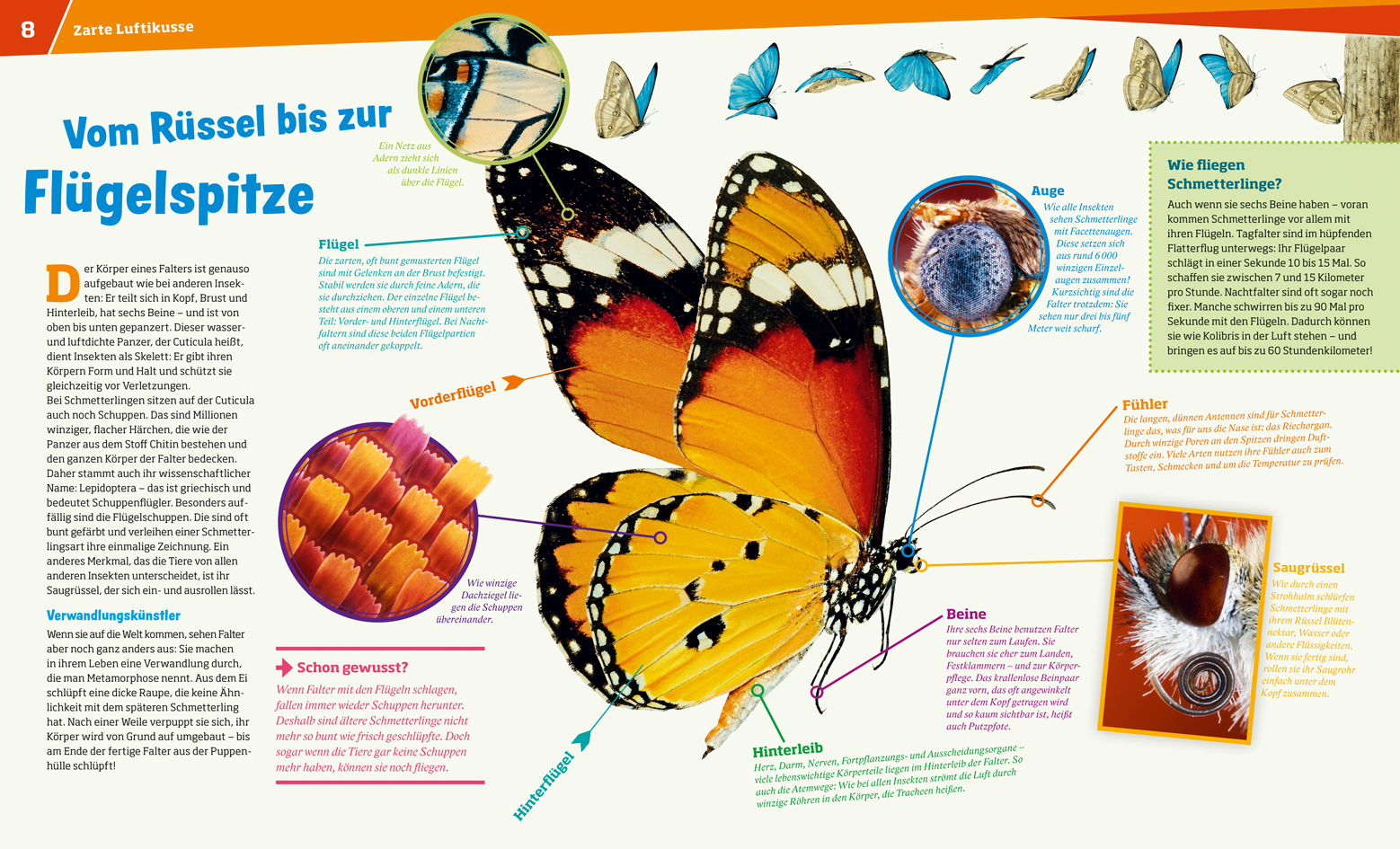 Schon dem Tyrannosaurus rex flatterten zarte Schmetterlinge um die Nase. Fossilienfunde zeigen, dass die ersten Nachtfalter bereits vor über 140 Millionen Jahren existierten. Die Tagfalter kamen erst später hinzu. Die Vielfalt der bunt geflügelten Wesen faszin...