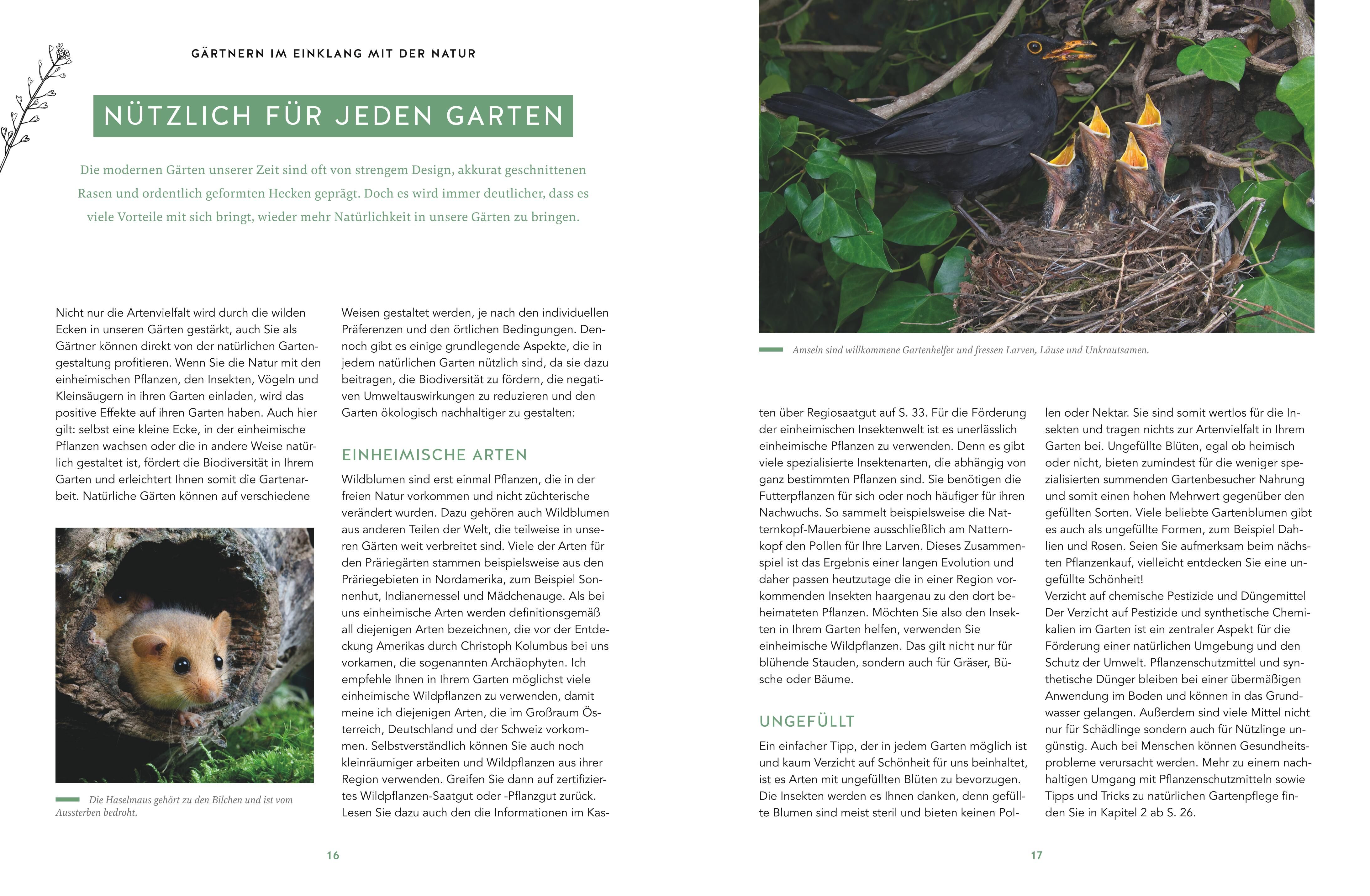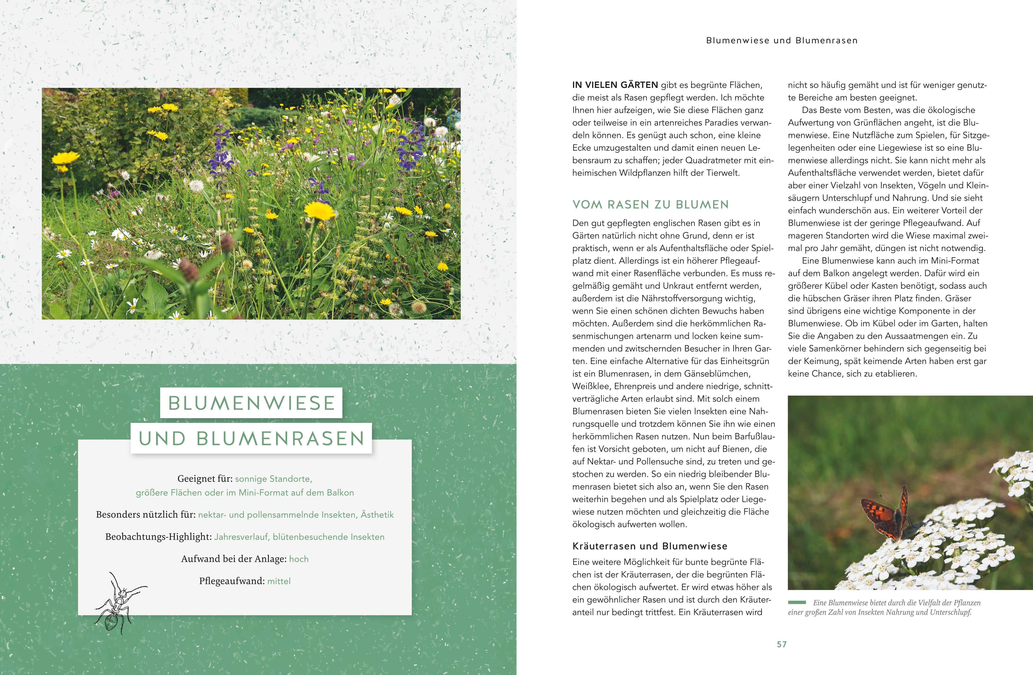Durch die detailreichen Anleitungen und Pläne ist das Buch auch für Einsteiger geeignet . Außerdem kann jeder selbst entscheiden, wie viel Platz er für die wilden Ecken hergeben und wie viel Aufwand er bei Anlage und Pflege betreiben möchte.