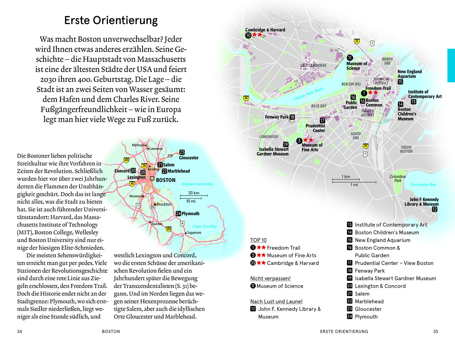Als wenn er genau wüsste, was Ihnen gefällt - planen Sie morgens schnell und unkompliziert den Tag mit dem Baedeker SMART Reiseführer. Genießen Sie in Ihrem Urlaub in Boston morgens an einem warmen Sommertag im »Common«, einer grünen Oase mitten in der Stadt, die ersten Sonnenstrahlen. Später erfahren Sie auf dem Freedom Trail von Boston jede Menge über die Geschichte der so europäisch wirkenden Metropole. Sollten Sie nach ein paar Tagen Erholung vom städtischen Trubel brauchen, wirkt ein Abstecher nach Cape Cod und auf die vorgelagerten Inseln Wunder. Oder begleiten Sie uns ins »echte« Vermont. Das gepflegte Städtchen Stowe im Herzen der Green Mountains ist zu jeder Jahreszeit ein beliebtes Ziel und geradezu die Quintessenz von Vermont. Neben den klassischen Sehenswürdigkeiten halten wir Ideen für ganz besondere Urlaubstage auf Ihrer Rundreise durch Neuengland bereit. Mit unseren durchdachten Reisetipps unterstützen wir bei der Urlaubsplanung und machen Ihren Urlaub in Boston zum einzigartigen Erlebnis.