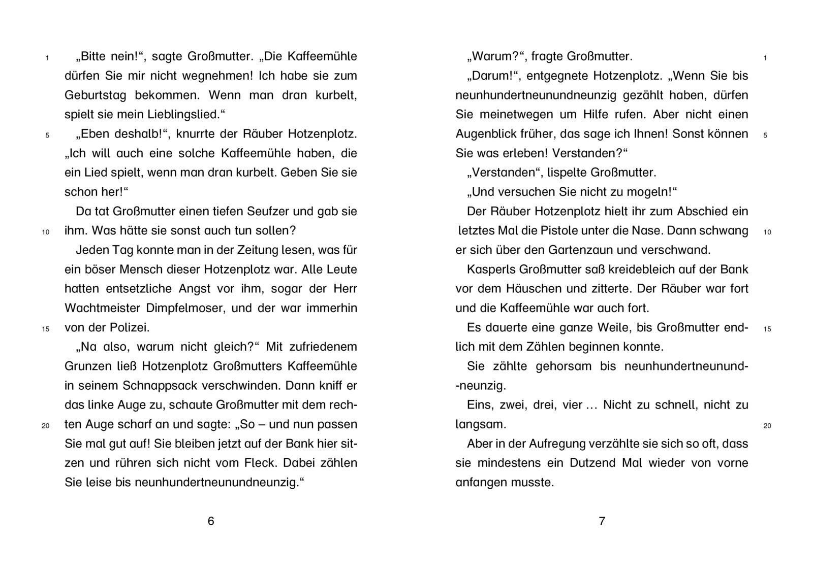 Schulausgabe im Taschenbuch-Format von Otfried Preußlers "Der Räuber Hotzenplotz" für Jungen und Mädchen zum Selbstlesen in der 3. und 4. Grundschulklasse. Das Schulbuch ist in großer Schrift gesetzt (Schriftart Schulbuch Nord) und bietet Zeilenanga...