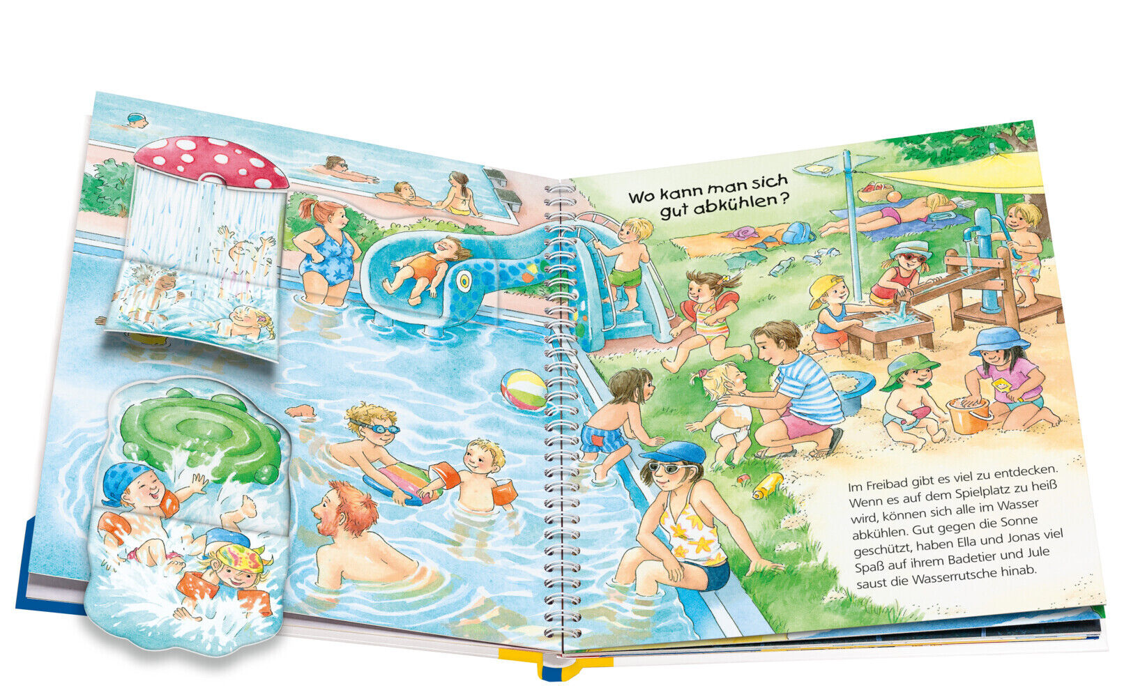 Wenn die Sommersonne lacht, zieht es die Geschwister Jonas und Ella nach draußen. Ein erfrischendes Eis in der Stadt, eine lustige Wasserschlacht im Garten oder ein Besuch im Freibad bieten Abkühlung an heißen Tagen Die Kinder freuen sich auf das große Sommerf...