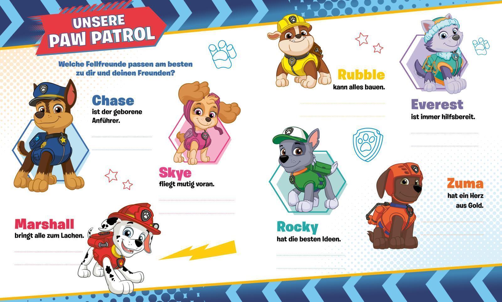 PAWtastisches Eintragbuch für alle Einsätze mit den eigenen Freunden und Freundinnen! Die Fellfreunde der PAW Patrol sind immer zur Stelle, wenn jemand Hilfe braucht. Gemeinsam erleben sie spannende Abenteuer und meistern als eingespieltes Team jede Pfotenmis...
