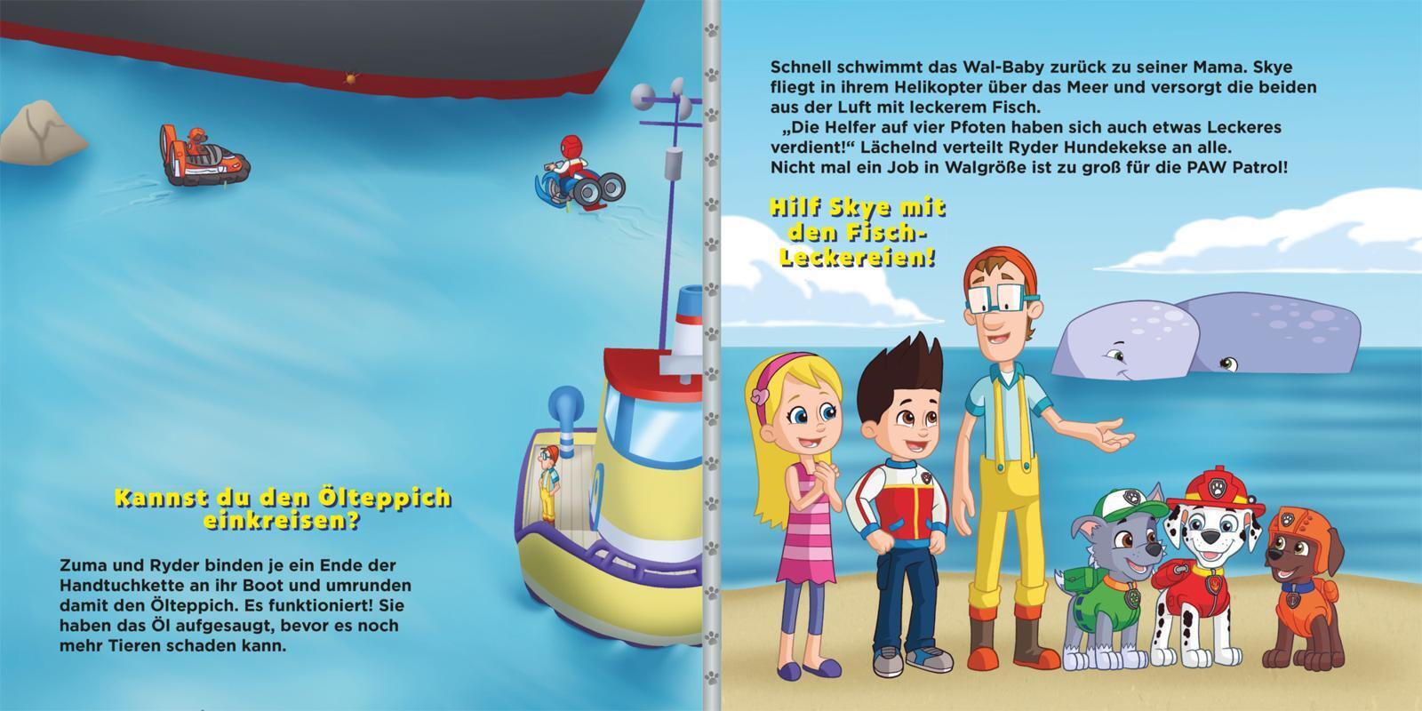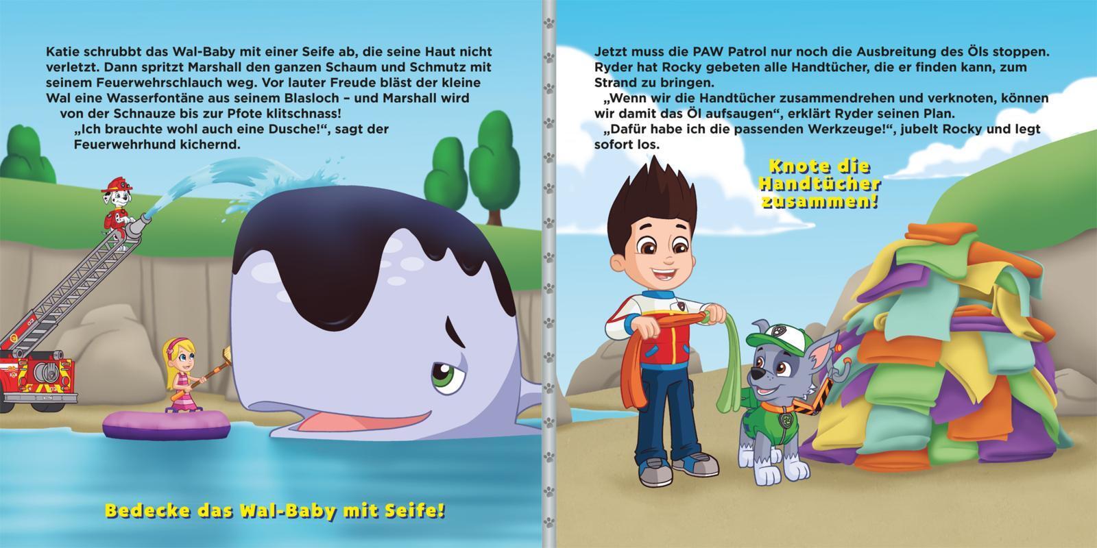 Interaktives Pappbuch mit Zieh- und Drehelementen - die kleinen Fans helfen der PAW Patrol! Hilf der PAW Patrol bei ihrem Rettungseinsatz auf dem Wasser! Vor der Abenteuerbucht verliert ein Schiff Öl und ein Wal-Baby gerät in Gefahr. Das ist ein Fall für die ...