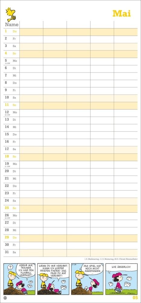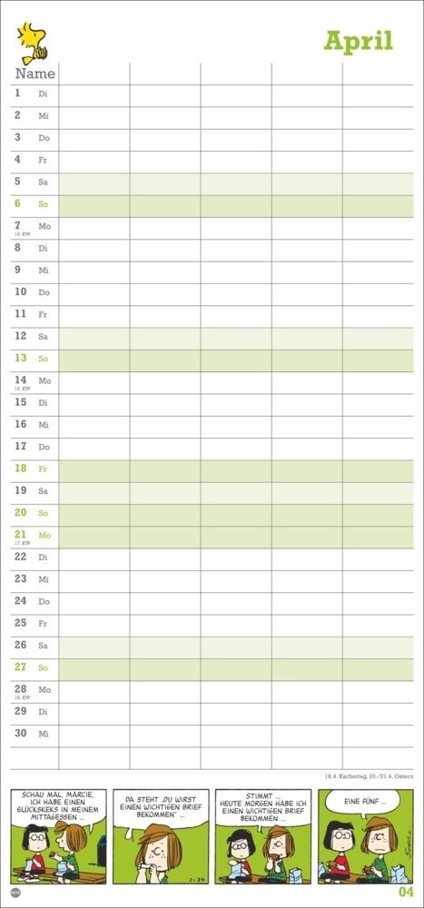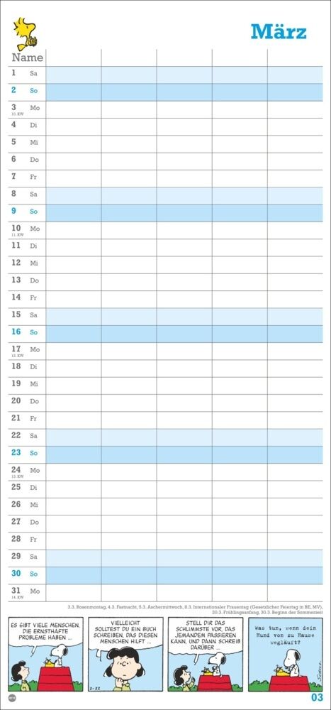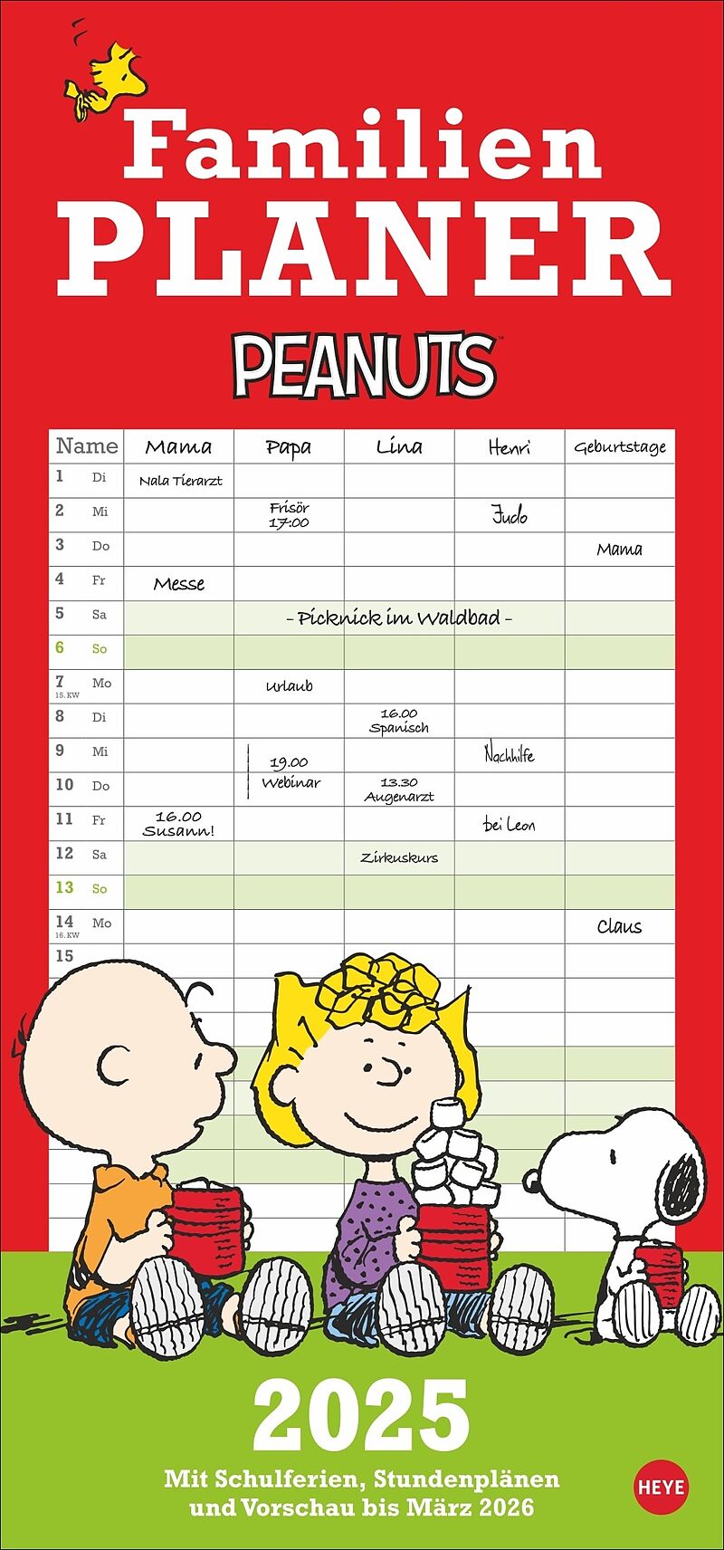 Mit dem neuen Peanuts Familienkalender 2025 immer alle Termine fest im Griff- Die schönsten Weisheiten und Cartoons von Charlie Brown, Snoopy und ihren Freunden, im Hochformat 21 x 45 cm- Für alle, die richtig was vorhaben - unser erfolgreiches Konzept für F...