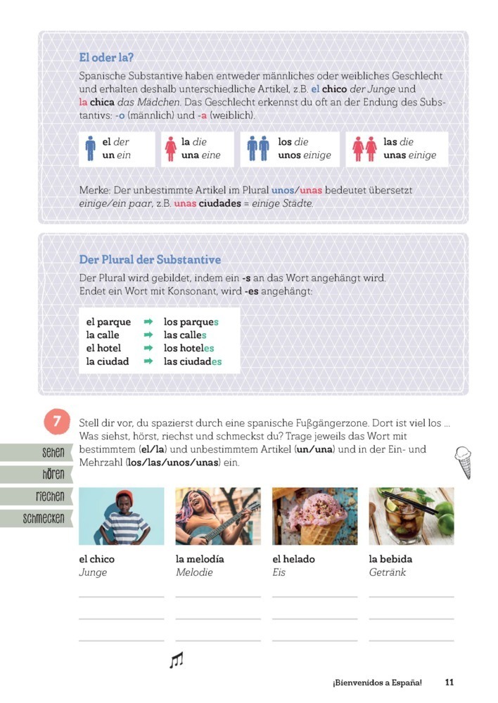 Spanisch lernen mit allen Sinnen Spanisch sehen, fühlen, schmecken, hören und riechen. Wer mit allen Sinnen in die spanische Sprache eintaucht, lernt am besten! Und so funktioniert es: In den Übungen und Texten benutzt du alle deine Sinne abwechselnd und glei...