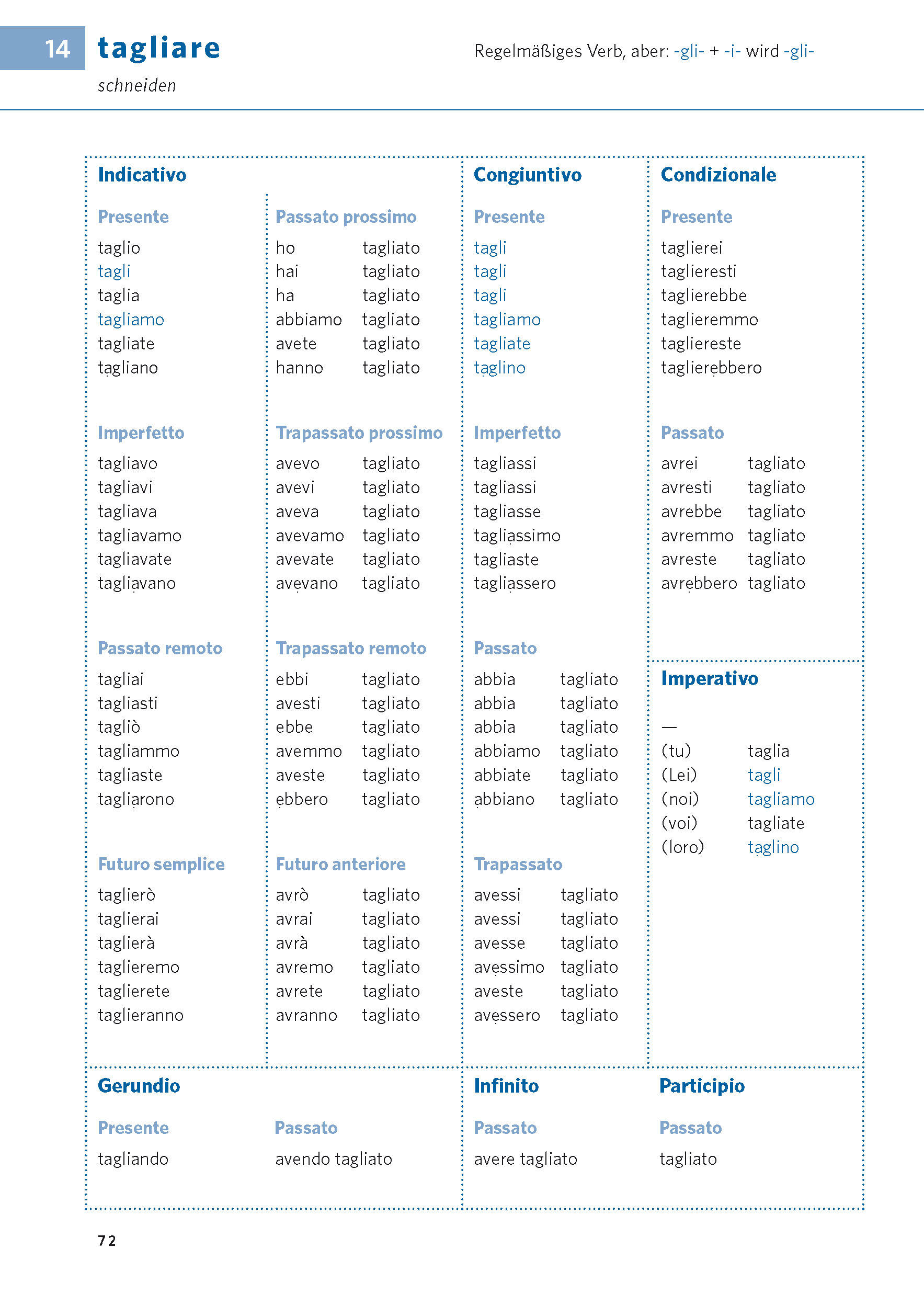 Alle Verbformen schnell nachschlagen und sofort richtig anwenden Wann benutzt man udire und wann sentire? Mit dem Doppelseitenprinzip finden Sie auf Fragen wie diese schnell die richtige Antwort: links die übersichtlichen Konjugationstabellen, rechts die Verb...