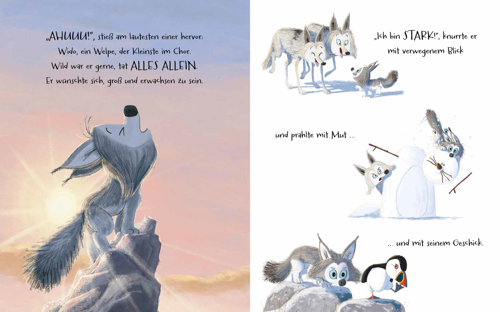 Kleiner Wolf in weiter Welt Wolfsjunge Wido will keine Hilfe von niemandem, ganz egal, was es ist. Schließlich ist er schon fast groß und schafft alles allein! Doch plötzlich ist der Welpe in der klirrenden Kälte der arktischen Nacht tatsächlich allein. Und da...