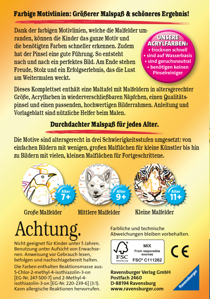 Farbige Motivlinien: Größerer Malspaß & ein schöneres Ergebnis! Dank der farbigen Motivlinien, können die Kinder das ganze Motiv Kleiner Igel und die Farben schneller erkennen. Der Pinsel hat eine gute Führung und so entsteht nach und nach ein perfektes Bi...