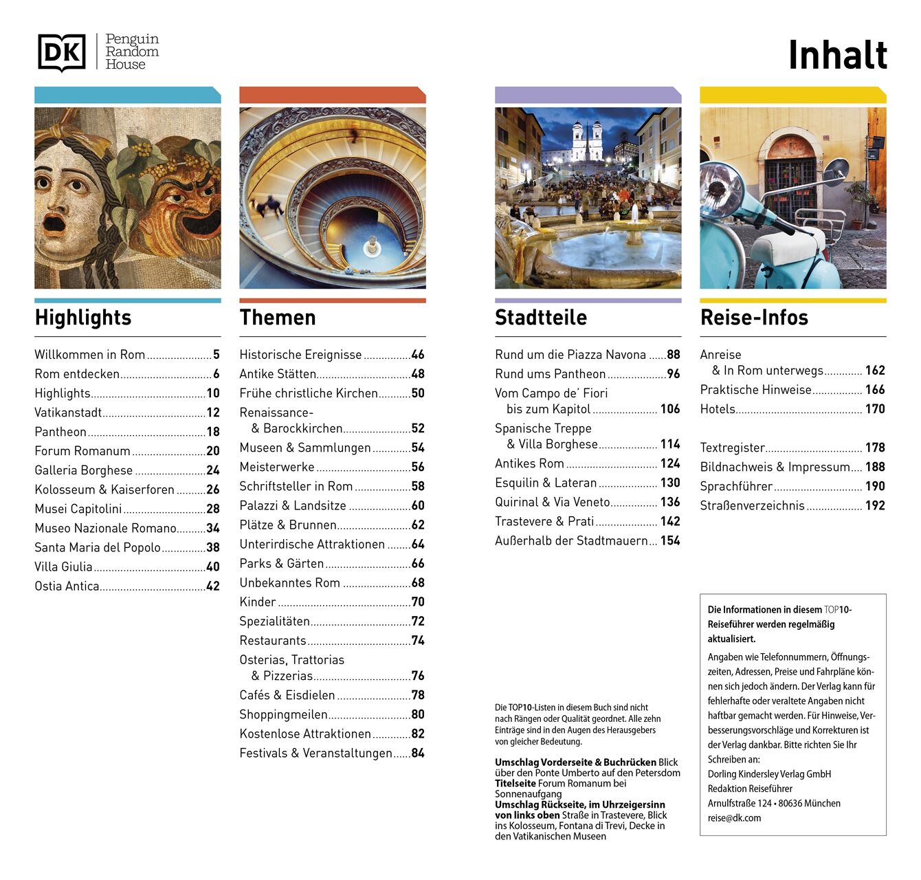Rom mit Kindern, Shopping in Rom oder Rom abseits der Touristenwege? Die themenorientierten TOP10-Listen bieten eine ideale Grundlage für Ihre ganz persönliche Reiseplanung. Ob antike Stätten und Barockkirchen, Parks und Gärten oder kostenlose und unbekannte Attraktionen: Im TOP10 Reiseführer Rom finden Sie genau das Richtige für Ihr individuelles Stadtabenteuer - als Alleinreisender, als Paar oder als Familie.*Reiseführer mit praktischen Reiseinfos und wetterfestem Stadtplan