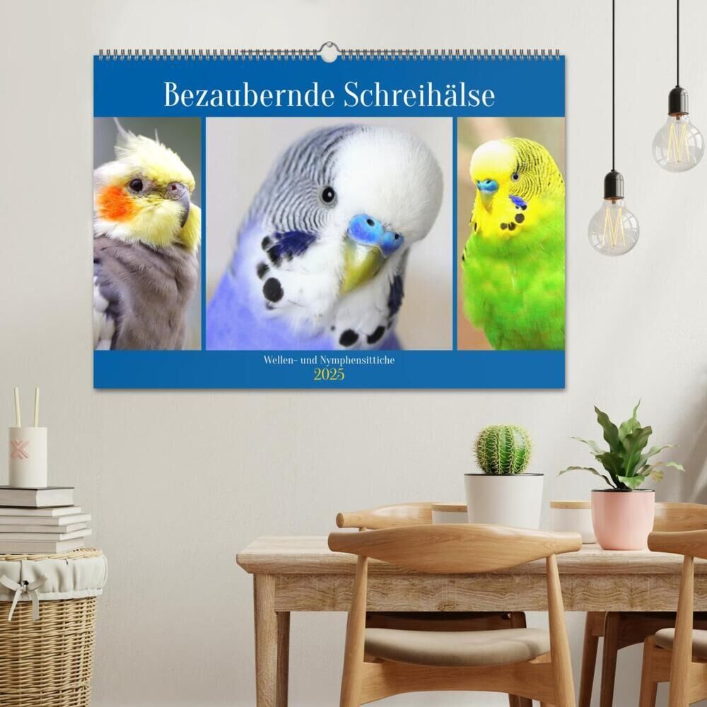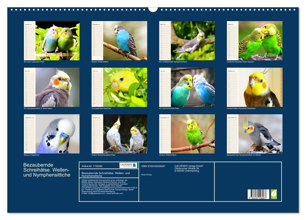 Bezaubernde Schreihälse. Wellen- und Nymphensittiche (Wandkalender 2025 DIN A2 quer), CALVENDO Monatskalender