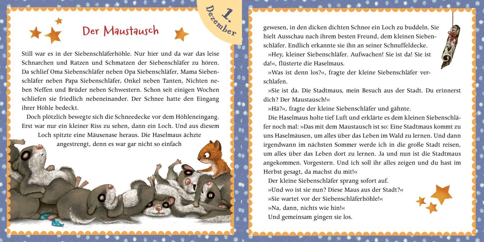 Der kleine Siebenschläfer: Adventsgeschichten aus dem Lichterwald Ein Adventskalender mit 24 weihnachtlich illustrierten Vorlesekarten und 24 Motiven zum Aufhängen, verpackt in einer liebevoll gestalteten Geschenkbox. Die Stadtmaus kommt zu Besuch in den Wald ...