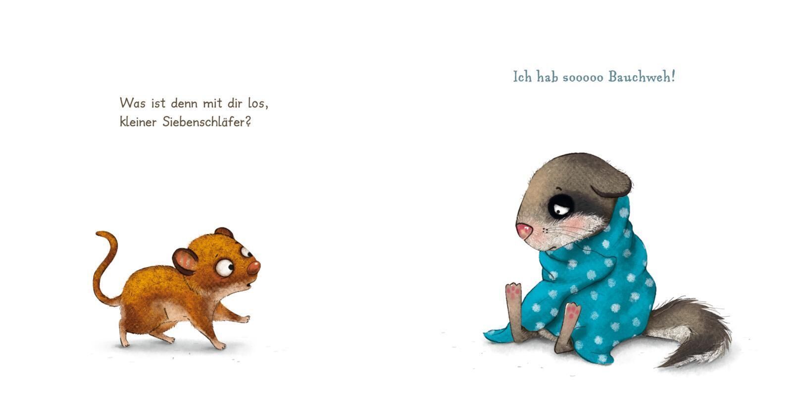 Der kleine Siebenschläfer: Gleich ist al Niedliches Pappbilderbuch vom kleinen Siebenschläfer für Kinder ab 2 Jahren. Der kleine Siebenschläfer hat Bauchweh. Die Haselmaus will helfen und bringt eine Wärmflasche. Sie legt sie dem kleinen Siebenschläfer ... auf...