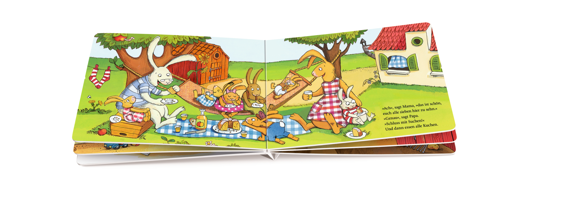Papa Hase ruft seine Kinder zum Kuchenessen, doch sieben kleine Racker haben sich versteckt! Was für ein herrlicher Spass für die Hasenkinder, als Papa sich im Garten auf die Suche macht und die Hasenkinder eins nach dem anderen entdeckt. Doch sind wirklich al...