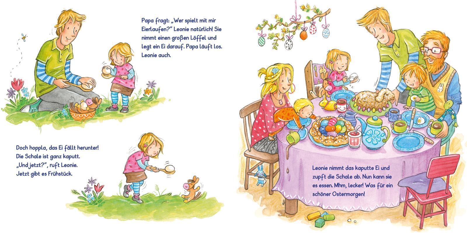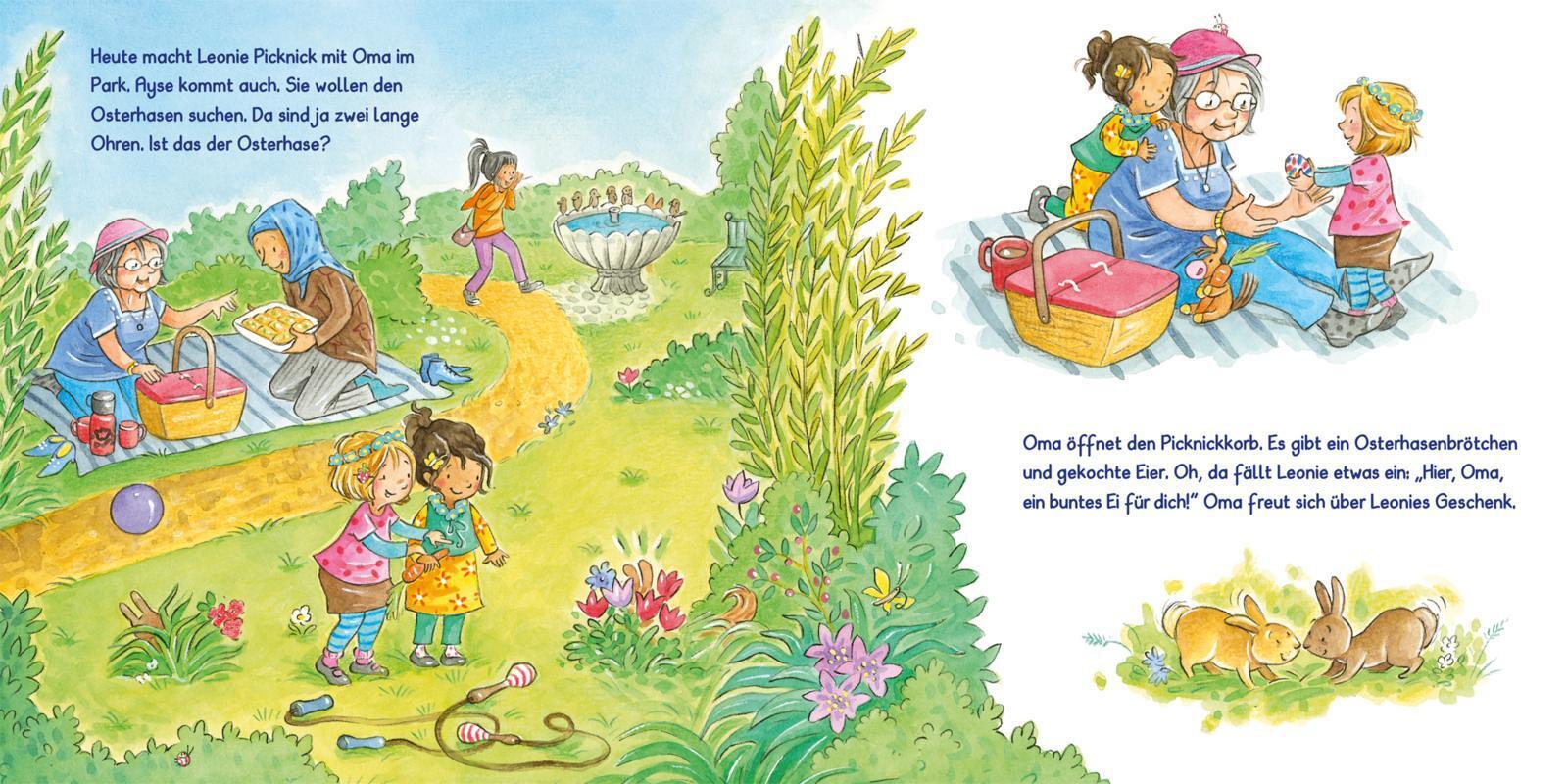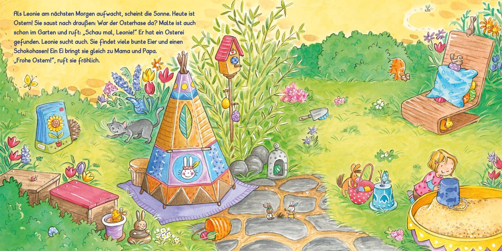 Modern, liebenswert, zeitgemäß - neue Kinderalltagsgeschichte mit Klappen zur Vorfreude auf Ostern. Leonie ist schon ganz gespannt, denn bald ist Ostern. In der Kita tollt sie durch die Blumenwiese und hält neugierig Ausschau, ob die Ostereier vielleicht scho...