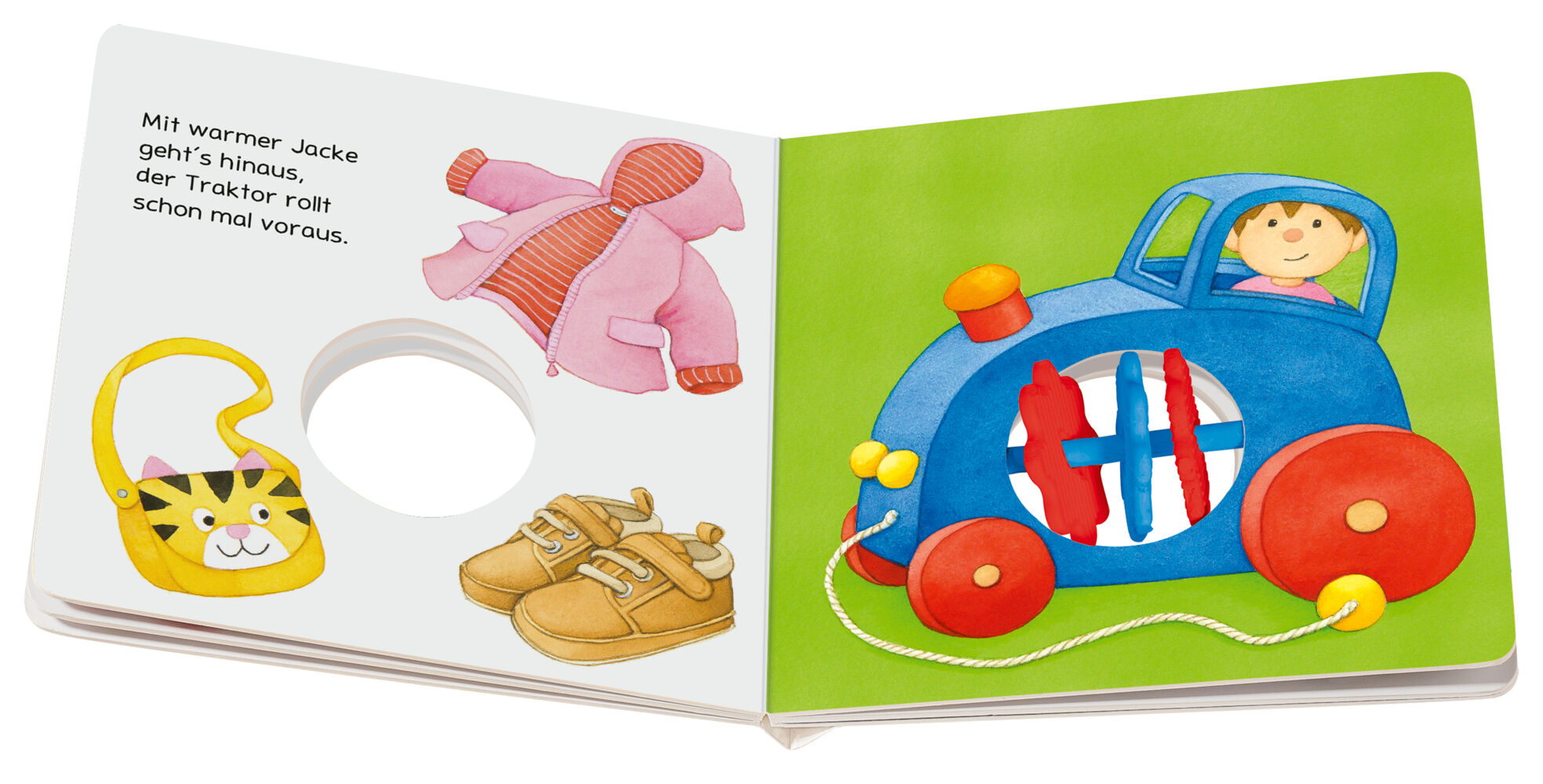 Großer Klapperspaß für kleine Kinderhände Was klappert denn hier? Auto, Frosch und viele andere Spielzeuge haben kunterbunte Klapperringe in ihrer Mitte. Schon die Kleinsten können dieses handliche und stabile Buch gut greifen und schütteln und damit selbst da...